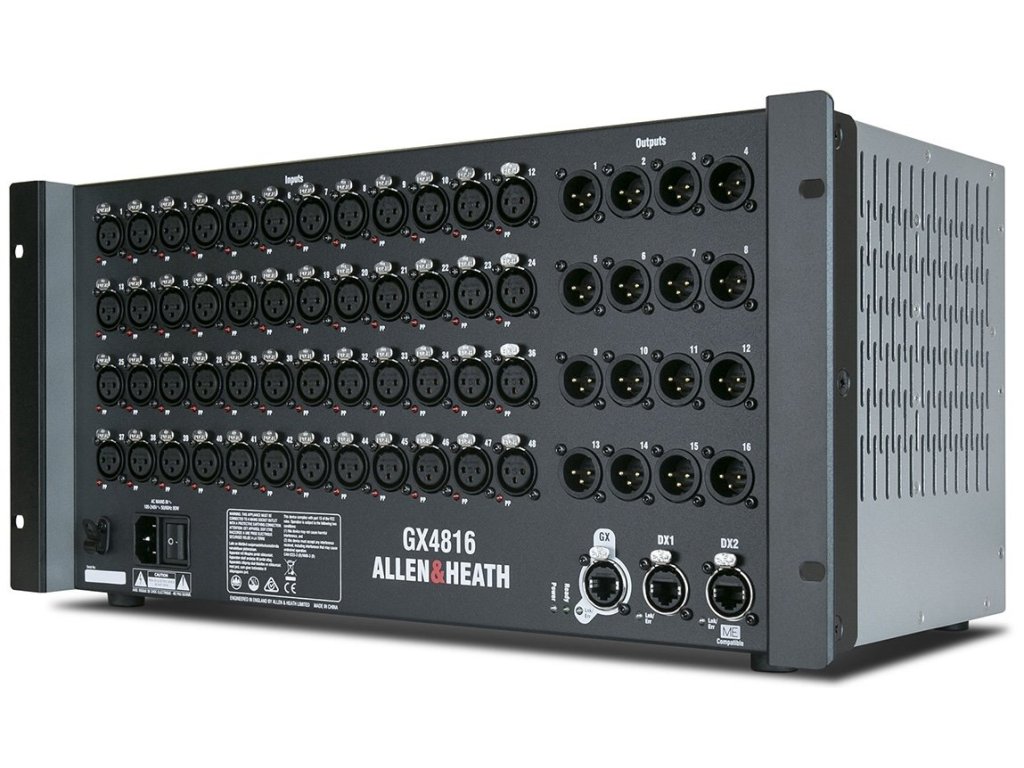 GX4816 to ekspander audio rozszerzający cyfrowe platformy mikserskie Allen & Heath Avantis, SQ i dLive*. Pracuje z częstotliwością próbkowania 96 kHz i zapewnia dużą liczbę zdalnie sterowanych przedwzmacniaczy wejściowych. *Kompatybilność z systemem dLive na podstawie Firmware V1.9