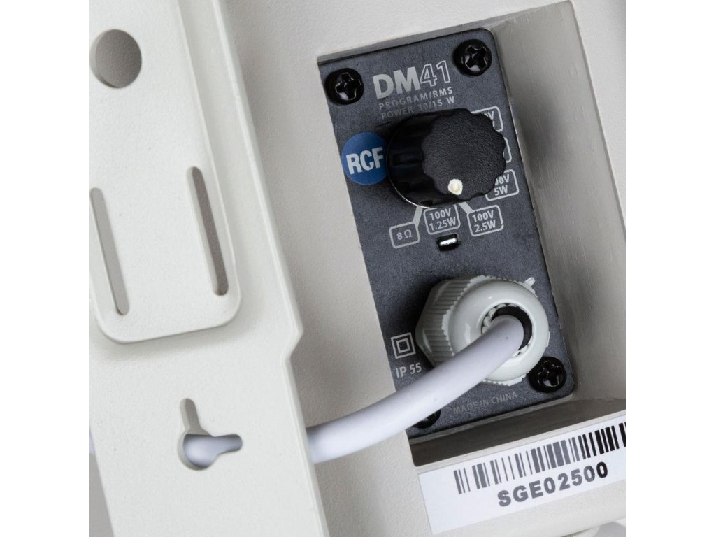 DM 41 to kompaktowy, dwudrożny głośnik przeznaczony do systemów o stałym napięciu. Głośnik zapewnia naturalną, płynną reprodukcję dźwięku, która idealnie nadaje się do zastosowania w restauracjach, centrach handlowych, sklepach, biurach, kawiarniach i innych miejscach. Podłączenie do linii głośnikowej odbywa się za pomocą dwużyłowego kabla wychodzącego z tylnej części głośnika. Obudowa zawiera ochronną perforowaną maskownicę i akcesoria do montażu na ścianie.