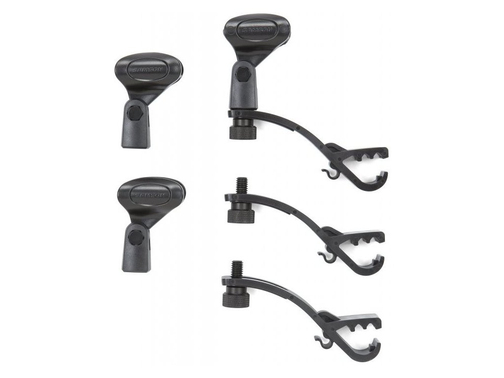 Uchwyty mikrofonowe Samson DMC200 można bardzo łatwo używać z dowolnym zestawem perkusyjnym. Uchwyt jest przymocowany do obręczy tomu za pomocą specjalnego klipsa. Mikrofony są umieszczone w obrotowym uchwycie, dzięki czemu można je bardzo łatwo obrócić do wymaganej pozycji. Klipsy są wykonane z bardzo wytrzymałego termoplastycznego elastomeru DuPont, który idealnie łączy siłę i elastyczność.