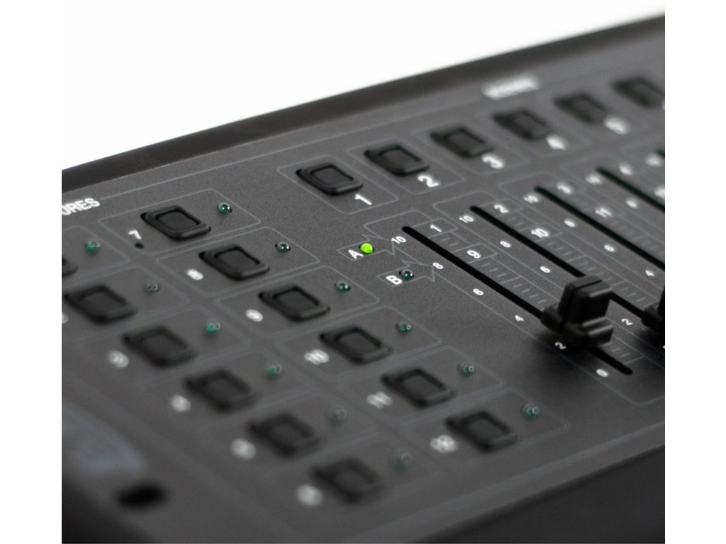Kontroler DMX Operator 1 oferuje 240 programowalnych scen, 12 indywidualnych kanałów fixture do sterowania, a na każdym można sterować do 16 kanałów DMX. Oświetlenie z mniej niż 16 kanałami DMX można łączyć na 1 kanał fixture. 6 programowalnych chases z wyborem fade time / speeds, 8 faderów, sterowanie MIDI w tym Blackout, DMX-512, 3-pin XLR, wbudowany mikrofon, przełącznik polaryzacji DMX.