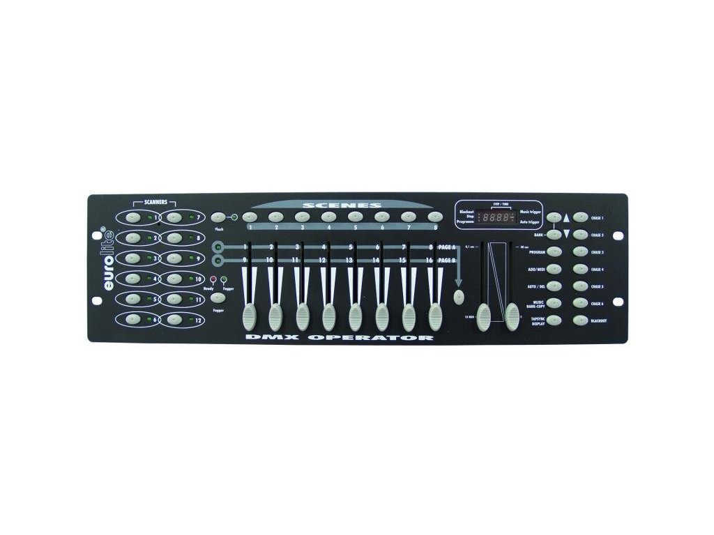 Uniwersalny kontroler DMX idealny do sterowania kompletnym parkiem oświetleniowym klubów, dyskotek i występów na żywo. Pojemność sterownika 192 kanałów DMX predysponuje kontroler do sterowania inteligentnymi efektami wielokanałowymi, np.: skanerami, ruchomymi głowicami, cyfrowymi ściemniaczami lub przełącznikami. Możliwość sterowania do 12 różnych urządzeń, każde z 16 kanałami DMX. 30 edytowalnych programów z łączną liczbą 240 scen, funkcja Blackout. Rozmiar 19", możliwość sterowania za pomocą muzyki (wbudowany mikrofon), podłączenie XLR dla sygnału DMX.