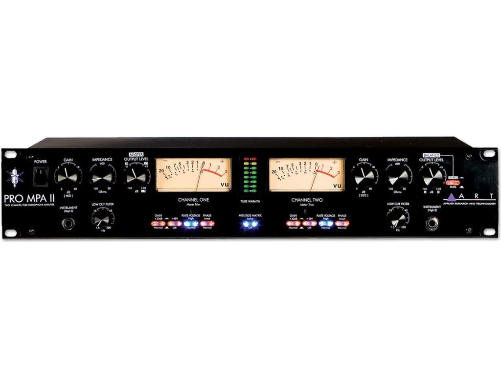 Dwukanałowy wzmacniacz mikrofonowy, który zapewnia wysoką wydajność w stosunku do przystępnej ceny. Oferuje opcjonalną impedancję wejścia, co wpływa na wydajność każdego mikrofonu dynamicznego lub wstęgowego. Można wybrać między podwójną mocą mono / stereo. Przedwzmacniacz może być używany przy niskim lub wysokim napięciu dwóch zintegrowanych lamp typu 12AX7, co pozwala na większą zmienność tonu i wydajności. Jego obudowę tworzy solidna stal z panelem przednim z anodyzowanego aluminium i można go zamontować w racku. Na panelu przednim znajdują się wskaźniki VU i LED, a sterowanie odbywa się za pomocą potencjometrów gain, impedance, output level i filtra low cut dla każdego kanału. Podłącza się go za pomocą złączy XLR i 6,3 mm. Impedancja: 150 - 3000 Ohm. Pasmo przenoszenia: 15 Hz - 120 kHz. Wymiary: 222 x 482 x 88 mm. Waga: 4,5 kg.