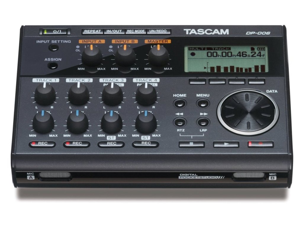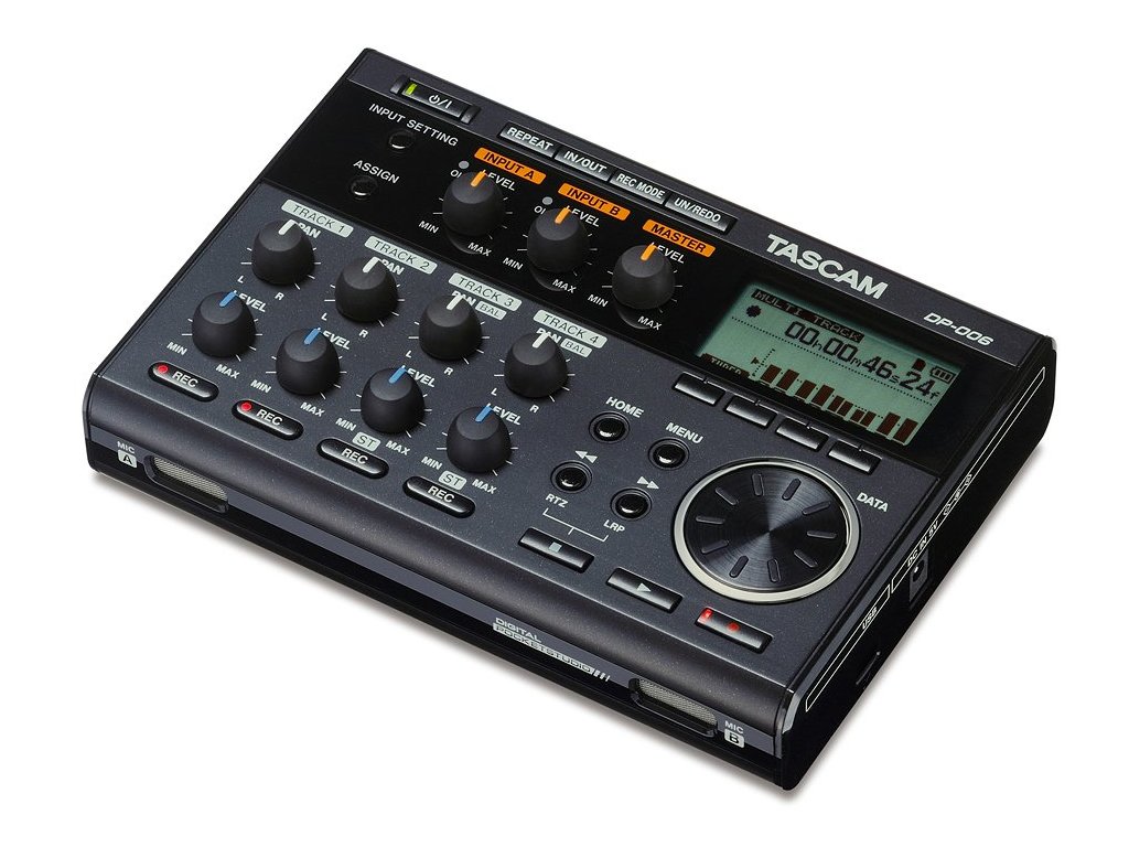 Tascam DP-006 to przenośne urządzenie nagrywające umożliwiające nagrywanie na kartę SD/SDHC o dowolnej pojemności (do 32 GB) w formacie WAV z częstotliwością próbkowania 44,1 kHz i głębią bitową 16-bit.