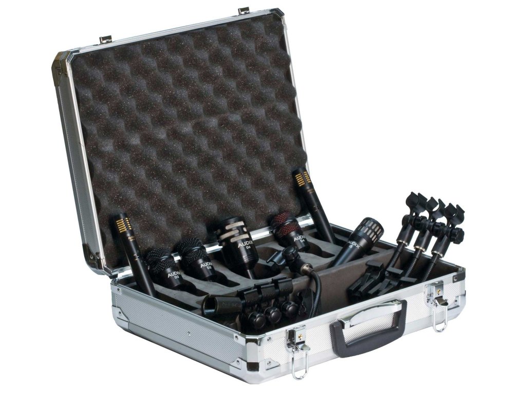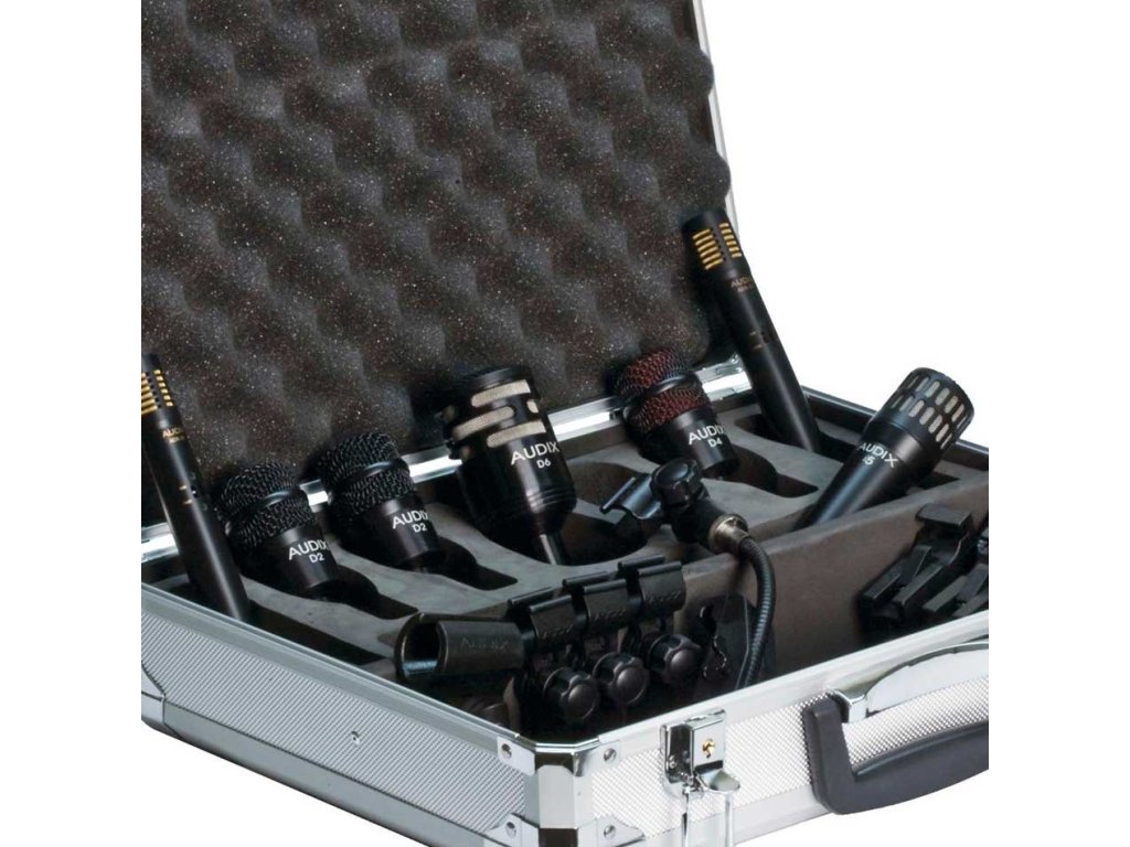Zestaw mikrofonów dynamicznych i pojemnościowych AUDIX do perkusji. Zawiera 1xI5, 2xD2, 1xD4, 1xD6, 2xADX51, 4x Dvice, 3x Dclip. Całość jest umieszczona w wyściełanej aluminiowej walizce.