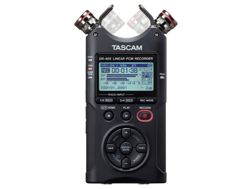 DR-40X to wszechstronny czterokanałowy rejestrator audio do muzyki, podcastów, kina i innych zastosowań wymagających wysokiej jakości dźwięku. Wychodząc z bardzo udanego urządzenia Tascam DR-40, ten rejestrator dodaje do już obszernego zestawu funkcji kilka nowych funkcji.