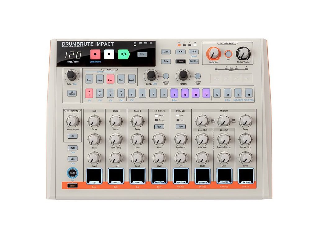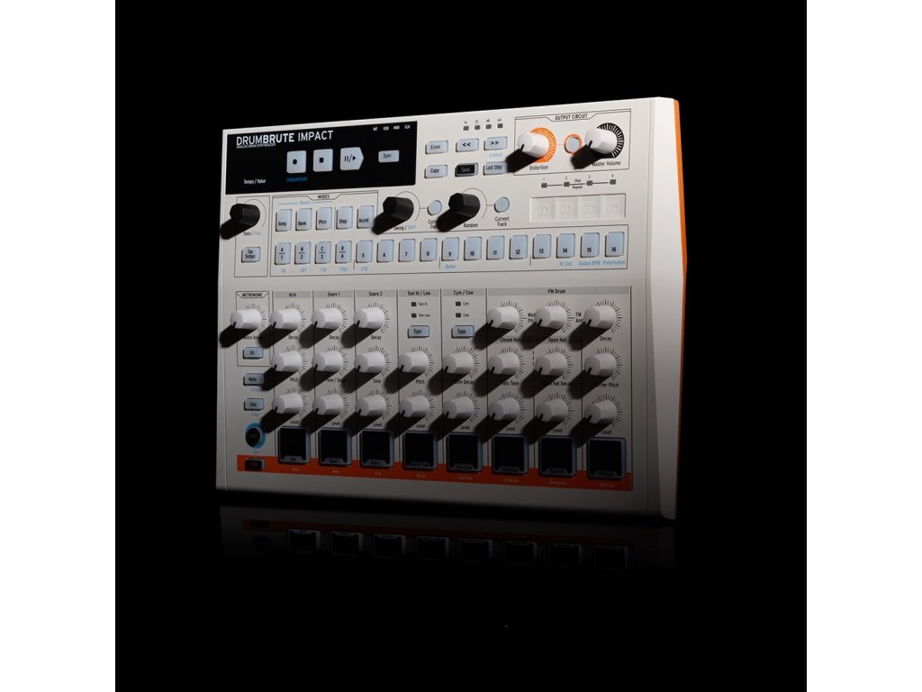 Przygotuj się na starcie z innym rodzajem brutalności. DrumBrute Impact to automat perkusyjny z własną twarzą, uzależniający, zabawny i zdolny do natychmiastowego zaspokojenia twórców bitów mocnym, unikalnym brzmieniem. DrumBrute Impact łączy w sobie tłuste, uderzeniowe analogowe dźwięki, potworne zniekształcenia wyjściowe, praktyczne sterowanie, doskonałą łączność i wydajny sekwencer, dzięki czemu wypełni Twoją muzykę energią i objętością.