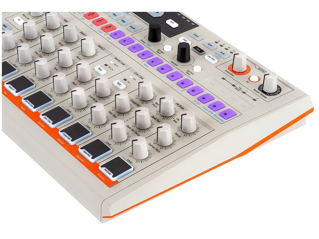 - 10 czysto analogowych brzmień: Kick, Snare 1, Snare 2, Tom Hi, Tom Low, Cowbell, Cymbal, Closed Hat, Open Hat i FM Sound
