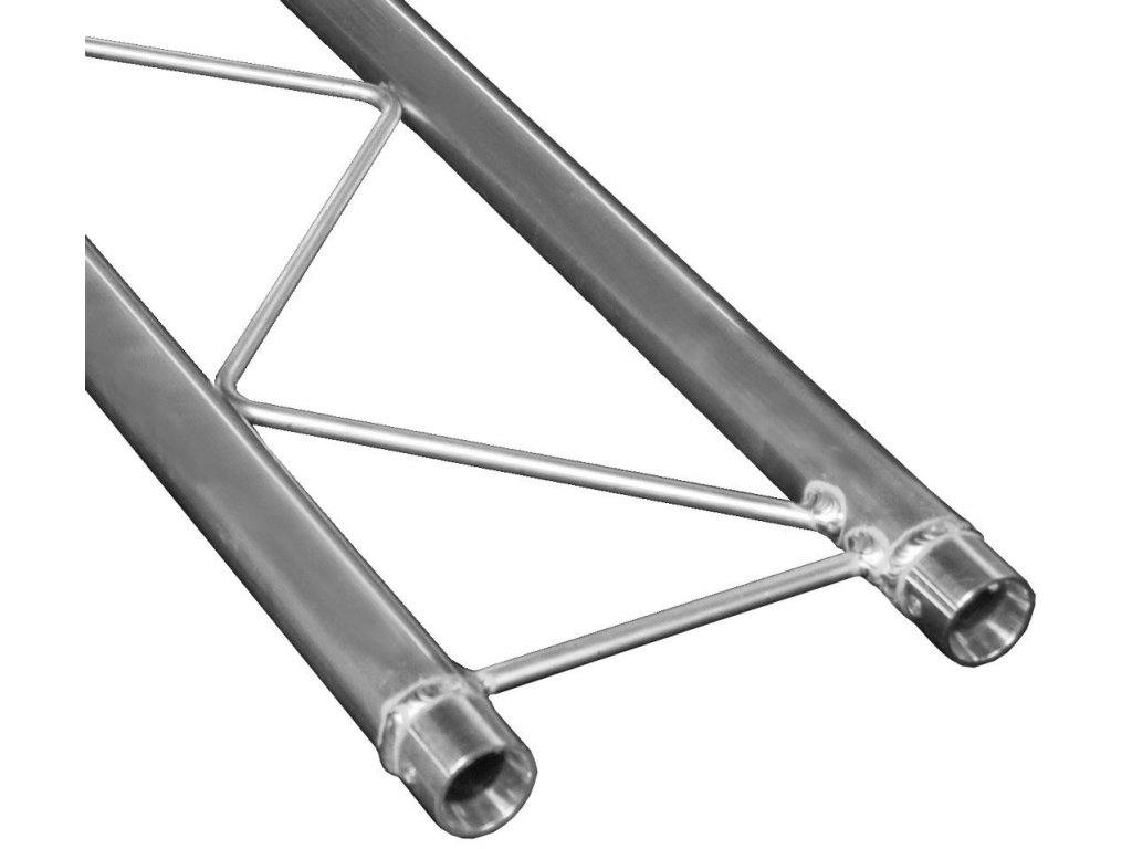 Element konstrukcyjny do budowy słupów i podiów do zawieszania instalacji oświetleniowych lub dźwiękowych. Element ma długość 50 cm i jest wykonany z dwóch prętów o średnicy 35 mm i grubości ścianek 2 mm. Konstrukcja wykonana jest ze stopu AlMgSi1, dzięki czemu każdy z elementów serii DT22 zachowuje niską wagę i wysoką wytrzymałość. Pręty wzmacniające mają średnicę 8 mm. Element jest wyposażony w końcówki do podłączania kolejnych elementów. Opakowanie zawiera również śruby i klipsy zabezpieczające.