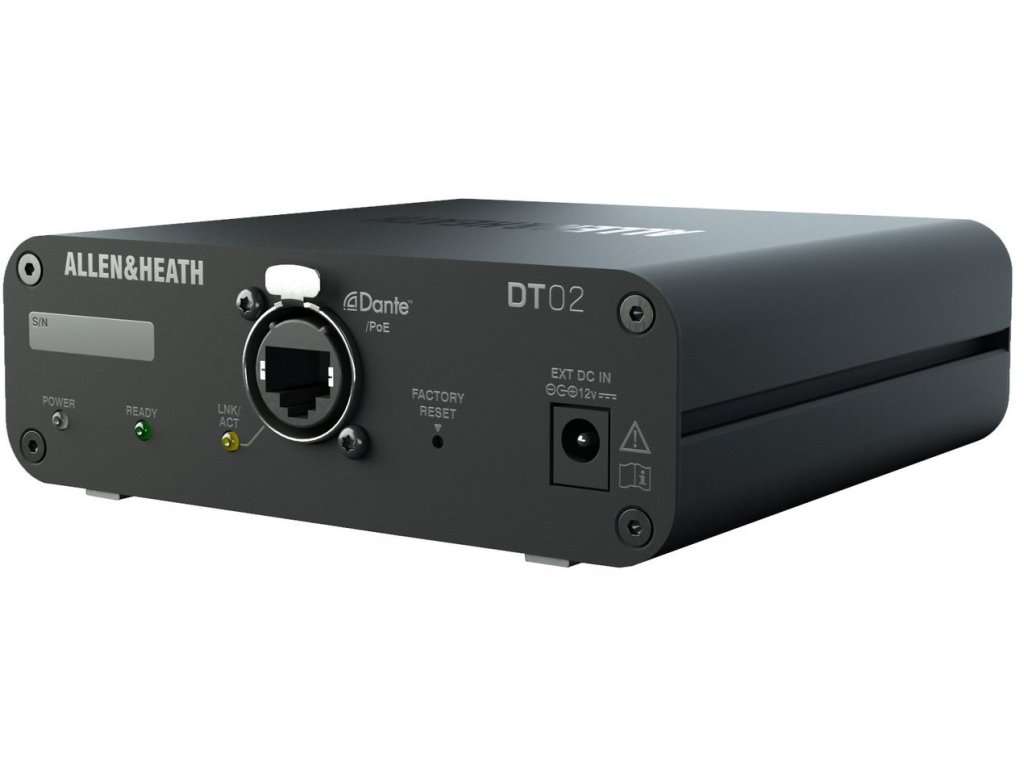 DT02 to kompaktowy i przede wszystkim dostępny interfejs Dante 48 kHz/96 kHz, który zapewnia 2x wyjście XLR tam, gdzie jest ono potrzebne w ekosystemie Dante. To sprytne urządzenie można wykorzystać zarówno w instalacjach stacjonarnych, jak i w mobilnym świecie koncertów i innych wydarzeń. DT02 jest kompatybilny ze wszystkimi konsoletami mikserskimi A&H i systemem AHM. DT02 współpracuje również z systemami Dante innych producentów.