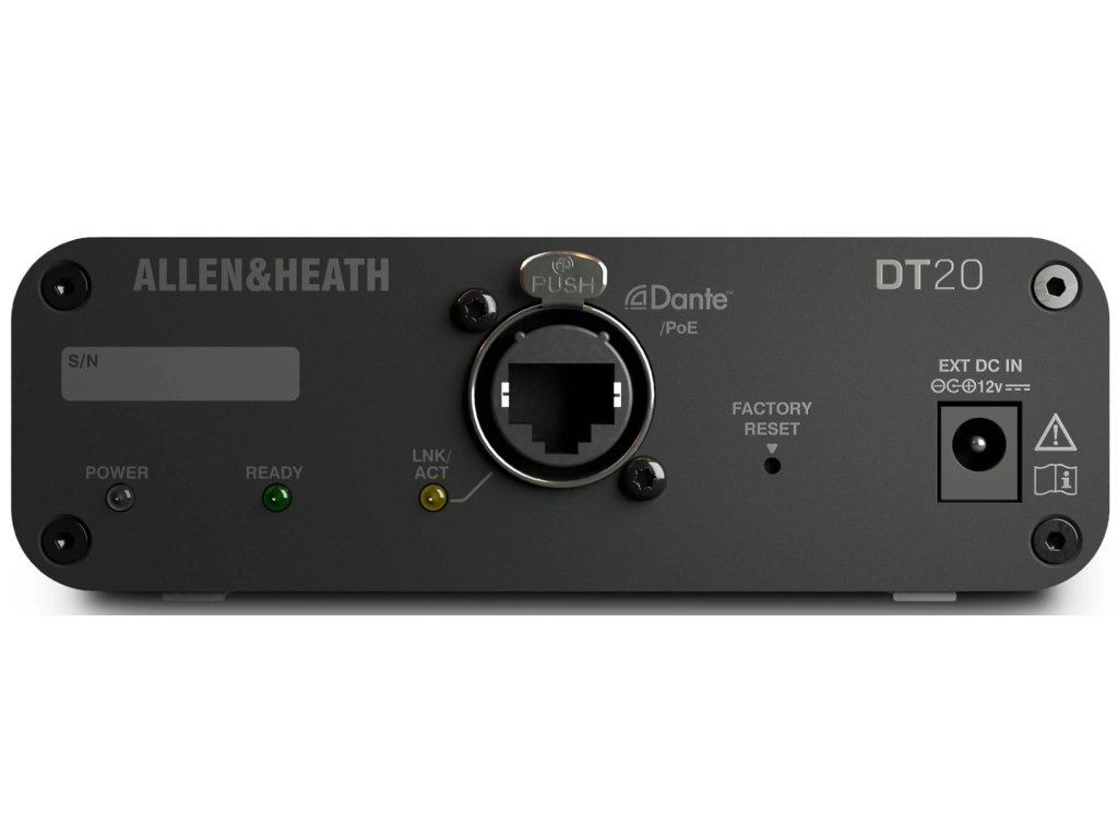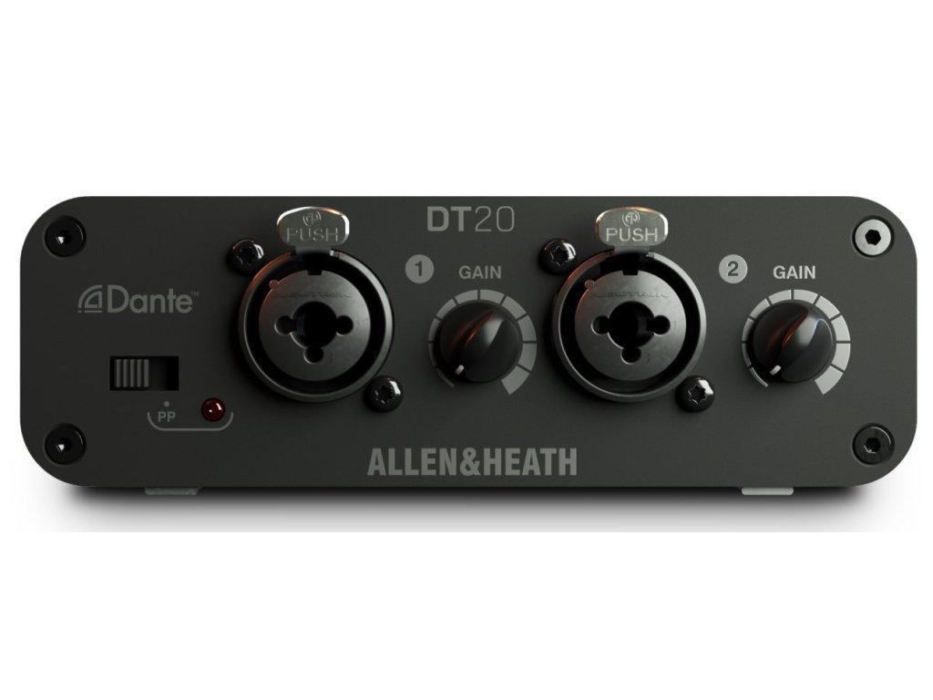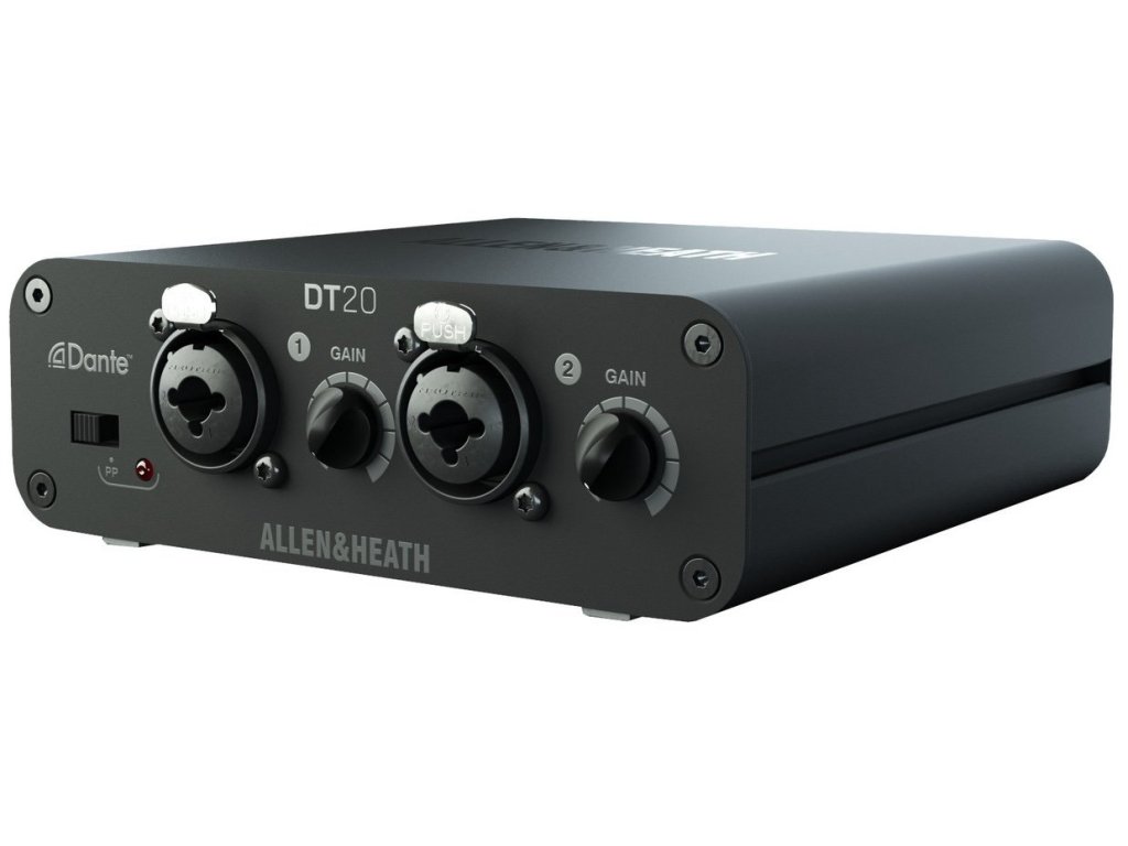 DT20 to kompaktowy i przede wszystkim dostępny interfejs Dante 48kHz/96kHz, który zapewnia 2x mikrofonowe wejście combi XLR tam, gdzie jest ono potrzebne w ekosystemie Dante. To sprytne urządzenie można wykorzystać zarówno w instalacjach stacjonarnych, jak i w mobilnym świecie koncertów i innych wydarzeń. DT20 jest kompatybilny ze wszystkimi konsoletami mikserskimi A&H i systemem AHM. DT20 współpracuje z systemami Dante innych producentów.