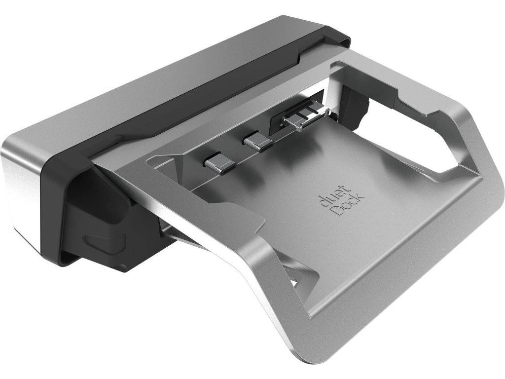 Stacja Duet Dock, która, podobnie jak wtyczka Channel Strip, jest sprzedawana oddzielnie, zapewnia bezpieczne podłączenie karty Duet 3, w tym jej lekkie nachylenie dla wygodniejszej obsługi, a ponadto odzwierciedla całą łączność, dzięki czemu można używać klasycznego okablowania bez użycia kabla breakout.