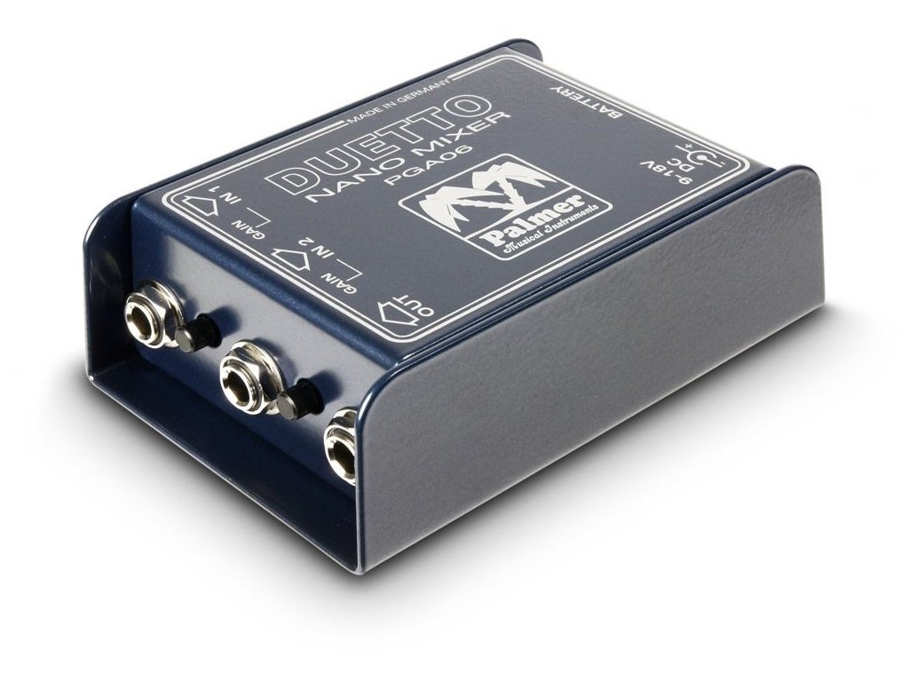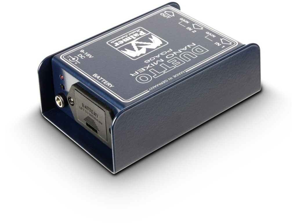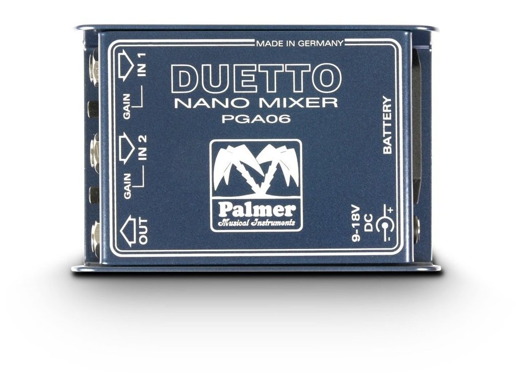 Palmer DUETTO to mikser o najmniejszym formacie. Wejścia są specjalnie zaprojektowane dla gitar elektrycznych pod względem poziomu i impedancji, ale oczywiście równie dobrze współpracują z innymi instrumentami i urządzeniami, które zapewniają poziom liniowy.