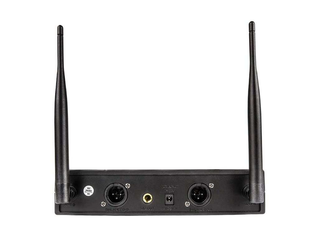 Odbiornik systemu DNA DVS2 jest wyposażony w dwie bardzo czułe anteny, dwa symetryczne wyjścia typu XLR i niesymetryczne wyjście audio 1/4" (6,3 mm jack). Na przednim panelu znajduje się panel sterowania z dużym, czytelnym wyświetlaczem LCD i dwoma potencjometrami do niezależnej regulacji głośności każdego mikrofonu. Wszystkie parametry pracy systemu są dobrze widoczne i można je łatwo i szybko konfigurować.