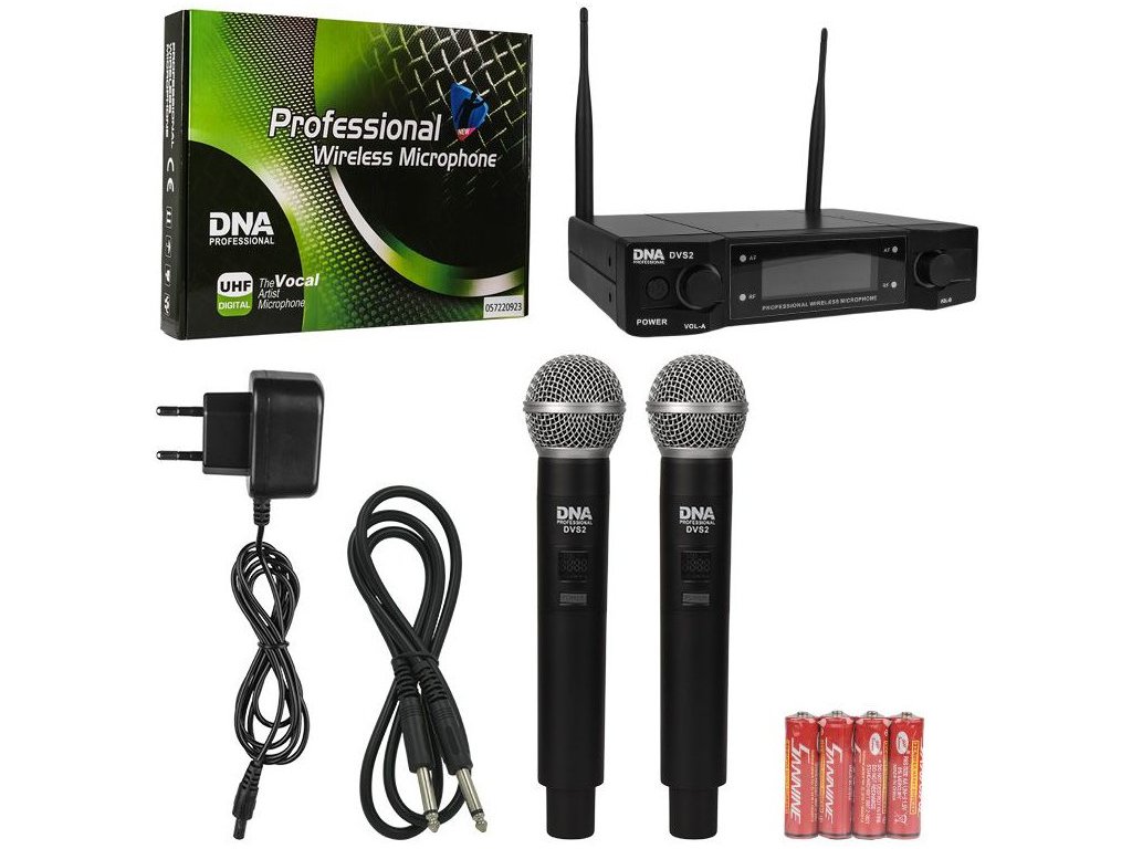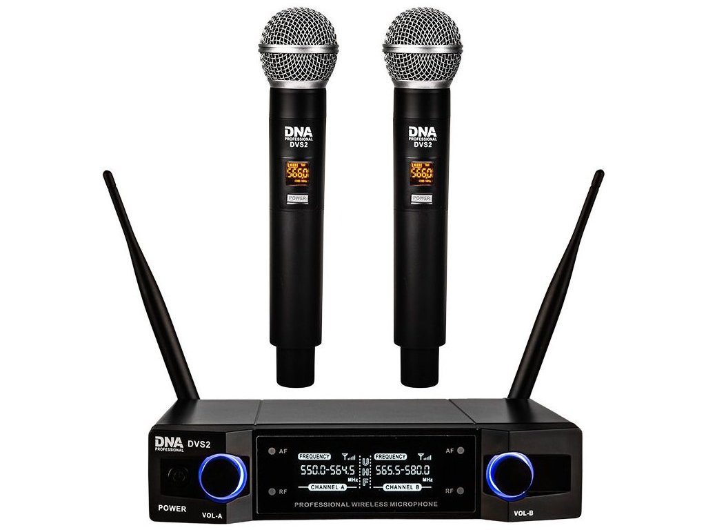 DNA DVS2 to bezprzewodowy zestaw mikrofonowy, który zawiera 2 ręczne bezprzewodowe mikrofony dynamiczne i kompaktowy odbiornik UHF z kolorowym wyświetlaczem LCD. Ten zestaw jest idealny dla piosenkarzy, chórów, zespołów, firm organizujących imprezy lub artystów estradowych. Znajdzie zastosowanie jako zestaw mikrofonów do karaoke, a także jako system mikrofonowy dla różnych typów instytucji kulturalnych i edukacyjnych.