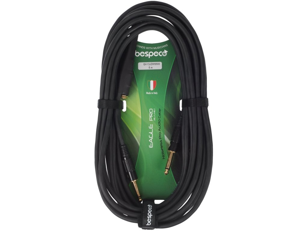 Ten instrumentalny i słuchawkowy kabel z serii Bespeco Eagle Pro posiada przewodnik wykonany w 98% z miedzi beztlenowej (OFC) oraz wewnętrzną półprzewodzącą powłokę PVC, dzięki której nie generuje żadnych szumów. Do jakości dźwięku przyczynia się również spiralne ekranowanie na ponad 92 procentach przewodnika lub pozłacane jacki z aluminiową obudową. Oczywistością jest odporna i jednocześnie elastyczna powłoka z PVC i wulkanizowanego silikonu. Oprócz dwóch złączy instrumentalnych posiada również złącze jack 3,5 mm (M) dla słuchawek oraz wejście dla jack 3,5 mm (F).