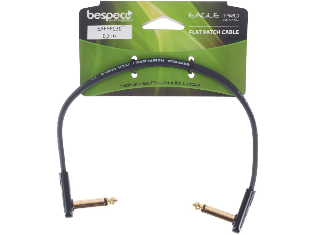 Kabel połączeniowy firmy Bespeco, który dzięki płaskim złączom nadaje się szczególnie do pedalboardów lub wszędzie tam, gdzie wolne miejsce jest cennym towarem. Kable z serii Bespeco Eagle Pro posiadają przewodnik z 98% miedzi beztlenowej (OFC) i wewnętrzną półprzewodzącą powłokę PVC, dzięki której praktycznie nie generują szumów. Do jakości dźwięku przyczynia się również spiralne ekranowanie na ponad 92 procentach przewodnika lub pozłacane jacki z aluminiową obudową. Oczywistością jest odporna i jednocześnie elastyczna powłoka z PVC i wulkanizowanego silikonu.