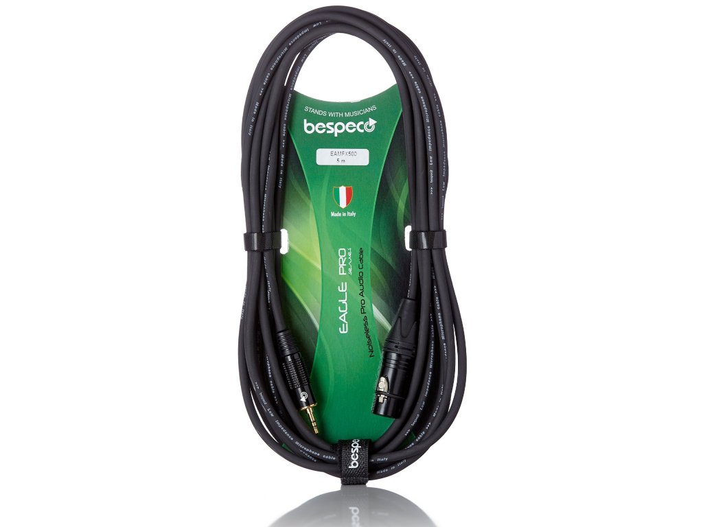 Kabel mikrofonowy z ulepszonej serii Bespeco Eagle Pro charakteryzuje się teraz jeszcze czystszą strukturą przewodnika z miedzi beztlenowej (OFC) i wewnętrzną półprzewodzącą powłoką PVC, dzięki której nie generuje szumów. Do jakości dźwięku przyczynia się również spiralne ekranowanie na ponad 92 procentach przewodnika, a także innowacyjne pozłacane złącza z aluminiową obudową i jeszcze wyższą niezawodnością. Złącze XLR (F) jest wyposażone w zmodernizowany bezpiecznik. Oczywistością jest odporna i jednocześnie elastyczna powłoka z PVC i wulkanizowanego silikonu.