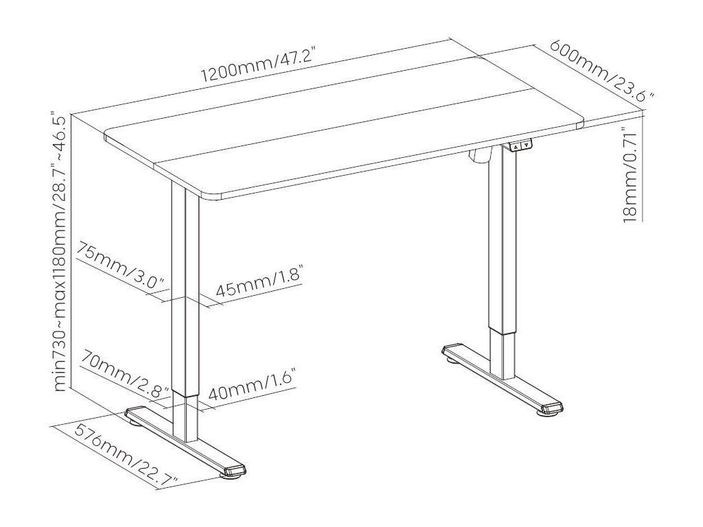 - Minimalna wysokość: 730 mm