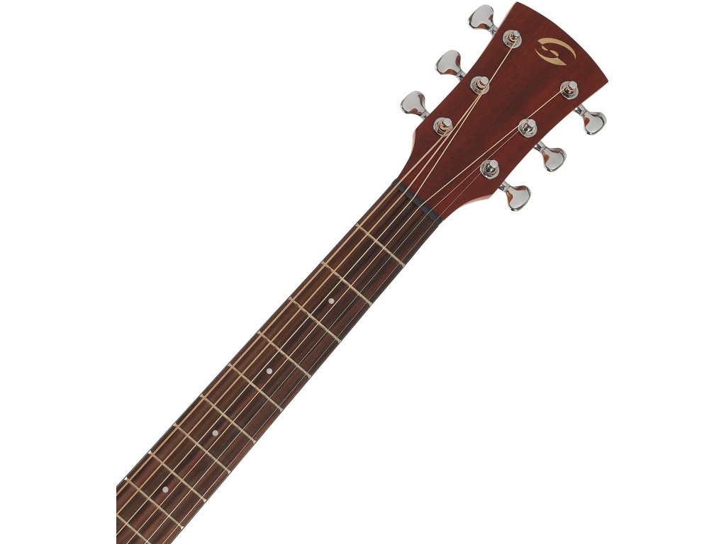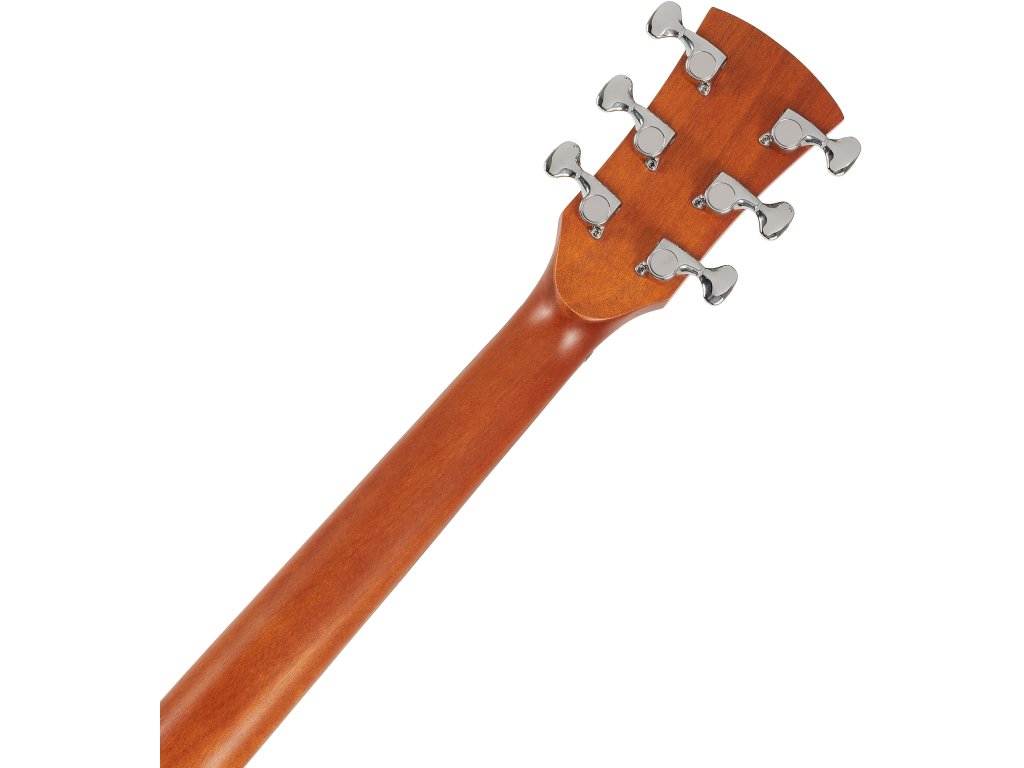 Struny są mocowane w chromowanych, odlewanych maszynkach do strojenia i palisandrowym mostku. Stylowe wykończenie podkreśla lakier open pore brown sunburst satin, palisandrowy binding oraz podparcie ramienia.