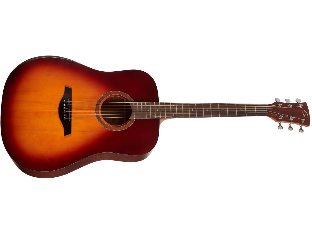 Soundsation EDGE SOLID SDN-BSB to półmasywna gitara akustyczna z dużym rezonansowym korpusem typu Dreadnought. Płyta wierzchnia gitary wykonana jest ze świerku, płyta tylna i boki z laminowanego sapele. Do szyjki z okoumé o przyjemnym profilu "C" przyklejona jest palisandrowa podstrunnica z dwudziestoma progami.