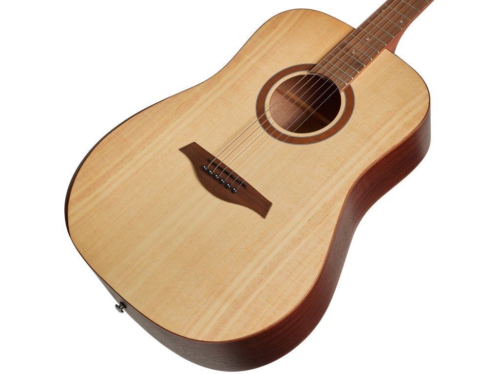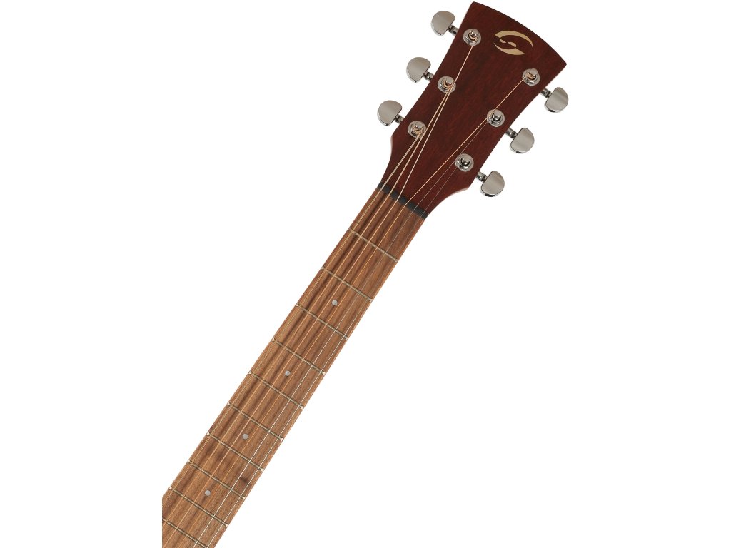 Struny są mocowane w chromowanych, odlewanych maszynkach do strojenia i orzechowym mostku. Stylowe wykończenie podkreśla wykończenie open pore natural satin oraz mahoniowa lamówka i podparcie ramienia.