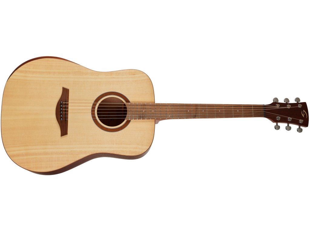 Soundsation EDGE ST DN-NT to niedroga gitara akustyczna z dużym pudłem rezonansowym typu Dreadnought, odpowiednia nie tylko dla początkujących gitarzystów. Przednia płyta gitary wykonana jest ze sklejki świerkowej, tylna płyta i boki wykonane są ze sklejki sapele. Do gryfu z okoumé o przyjemnym profilu "C" przyklejona jest orzechowa podstrunnica z dwudziestoma progami.