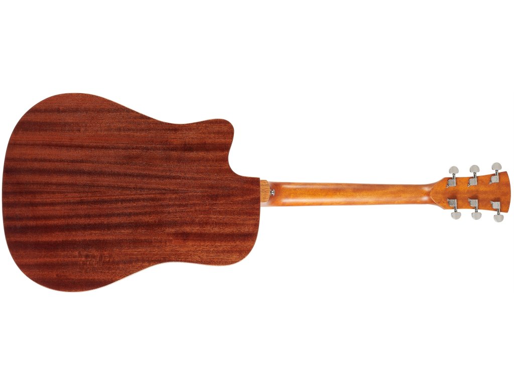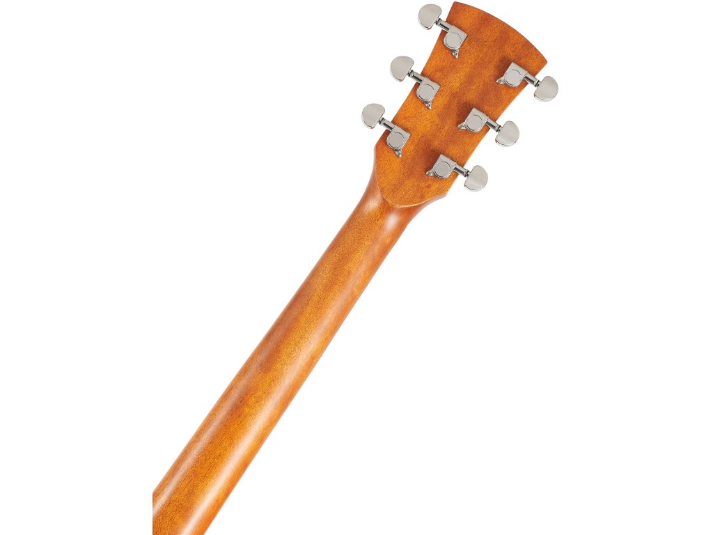 Struny są mocowane w chromowanych, odlewanych maszynkach do strojenia i orzechowym mostku. Stylowe wykończenie podkreśla satynowe wykończenie open pore yellow sunburst, mahoniowa lamówka i podparcie ramienia.