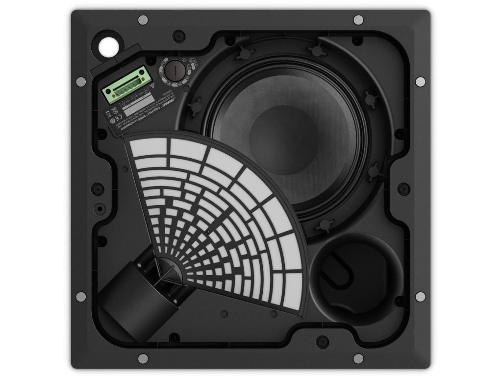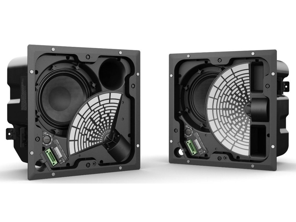 - Montaż w suficie zapewnia minimalny wpływ wizualny przy mniejszej liczbie jednostek potrzebnych do zapewnienia równomiernego dźwięku