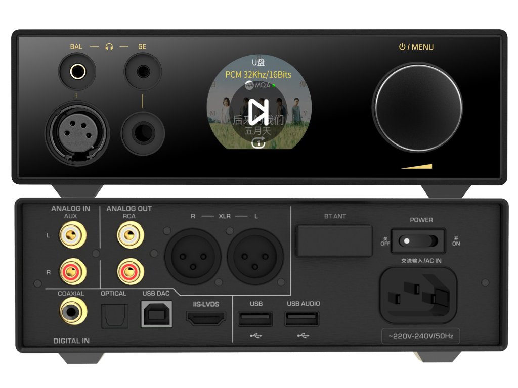 - Złącza: wyjścia słuchawkowe 3,5 mm, 6,35 mm, 4,4 mm, XLR, USB DAC, dysk USB, koncentryczne, optyczne, I2S, wyjście audio USB, wyjście XLR i RCA, wejście analogowe RCA