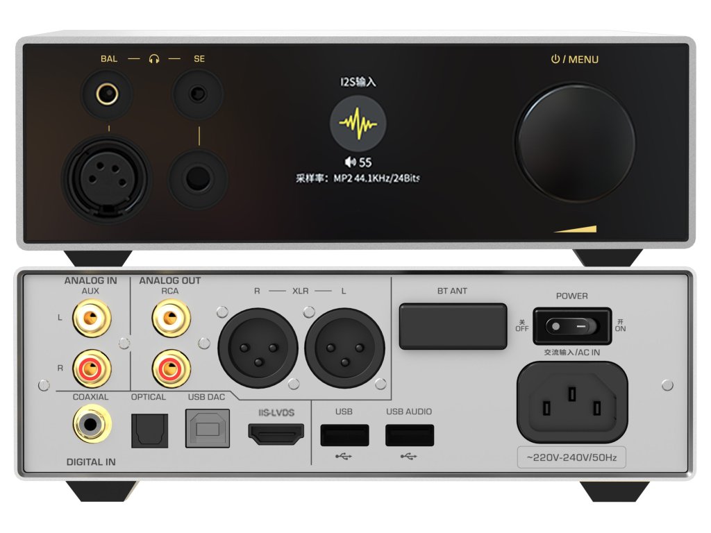 - Złącza: wyjścia słuchawkowe 3,5 mm, 6,35 mm, 4,4 mm, XLR, USB DAC, dysk USB, koncentryczne, optyczne, I2S, wyjście audio USB, wyjście XLR i RCA, wejście analogowe RCA