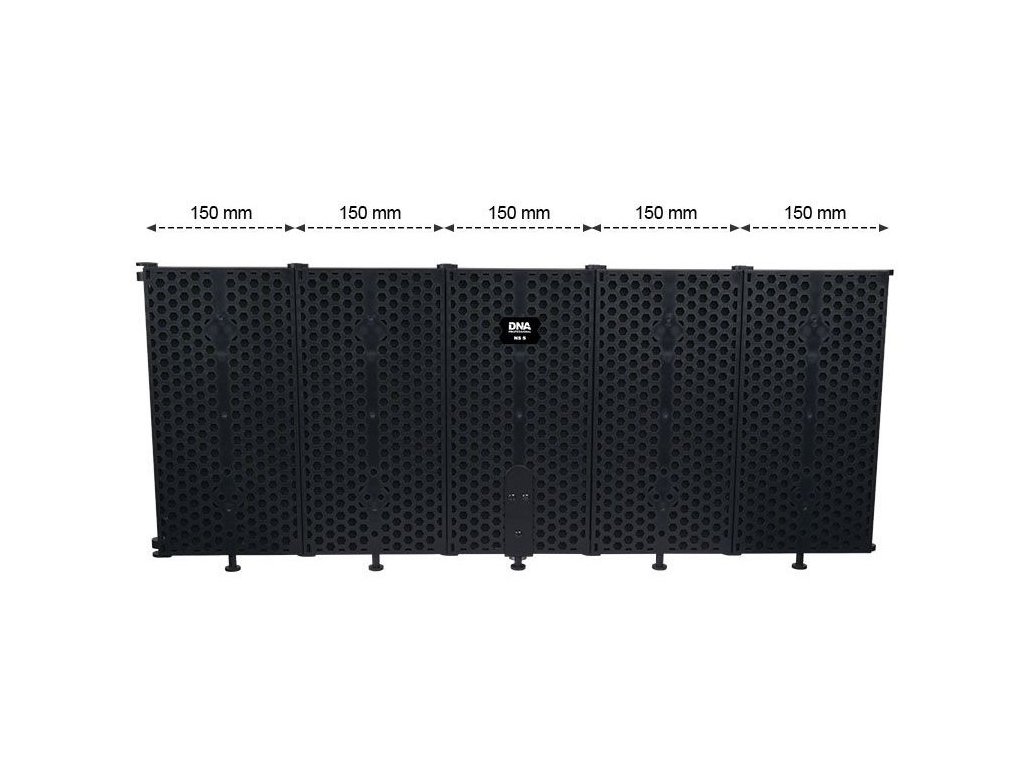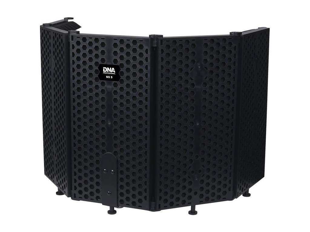 DNA NS 5 to solidnie skonstruowany, bardzo uniwersalny, a jednocześnie stosunkowo niedrogi ekran akustyczny do mikrofonu. Dzięki niemu możliwe jest nagrywanie dźwięku bez pogłosów związanych z odbiciem fali akustycznej od otaczających elementów. Ekran akustyczny ma strukturę 5-panelową. Każde skrzydło można dowolnie konfigurować względem sąsiedniego pod kątem do 150 stopni, co pozwala stworzyć dobrze wytłumioną przestrzeń dla każdego mikrofonu. Specjalnie profilowana, stożkowa gąbka techniczna jest dodatkowo doskonałym podkładem pochłaniającym dźwięk. Lekka, składana konstrukcja sprawia, że cały ekran jest bardzo mobilny i nie zajmuje dużo miejsca podczas transportu. Zestaw zawiera zestaw akcesoriów, które umożliwiają montaż na statywie i jarzmie z gwintem do uchwytu mikrofonu z korekcją gwintu od 3/8 do 5/8 cala.