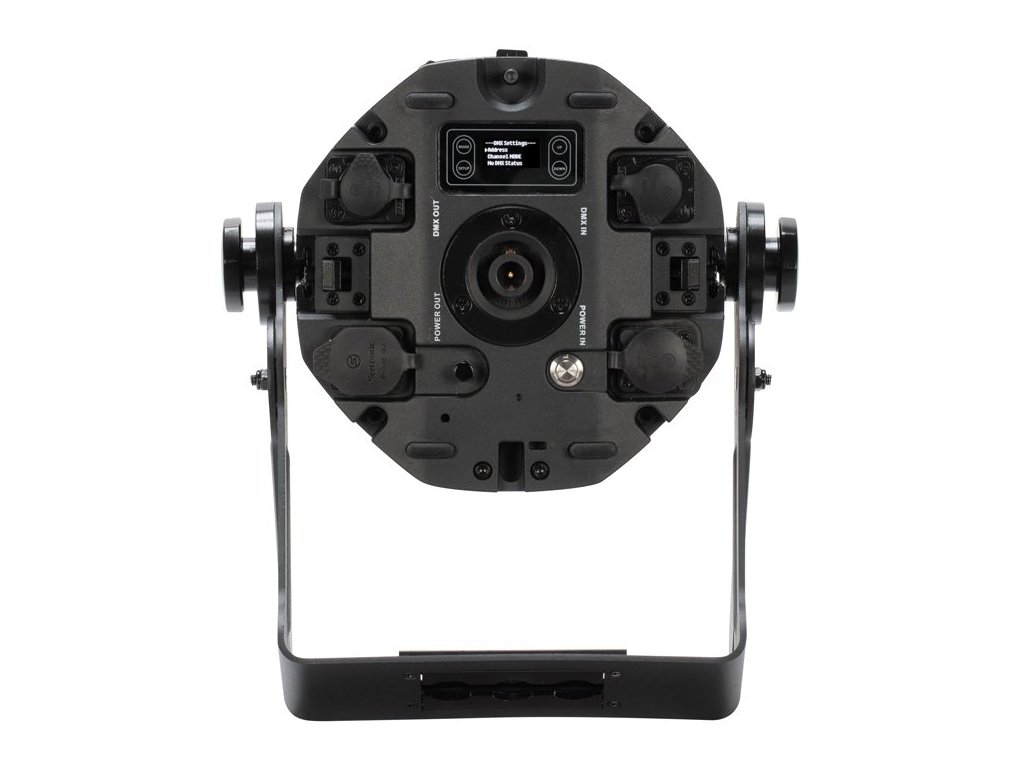 Obudowa o stopniu ochrony IP65, cyfrowy wyświetlacz OLED, system L Track i regulowane nóżki umożliwiają łatwą instalację i dopasowanie. Opcje sterowania reflektorem obejmują DMX512, Aria X2 Wireless DMX, Bluetooth, kompatybilność RDM i dołączony bezprzewodowy pilot zdalnego sterowania UCIR24.