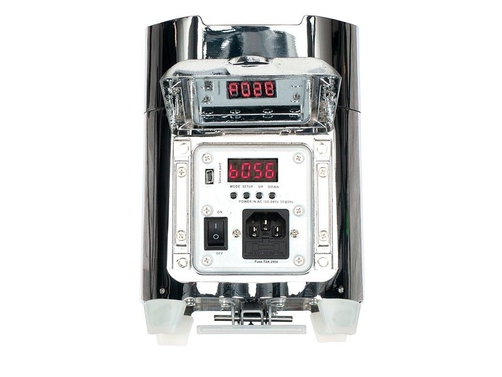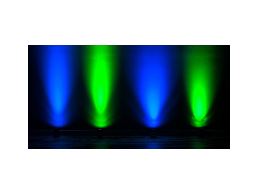 - Źródło światła: 4 RGBWA + UV HEX-LED (czerwony, zielony, niebieski, biały, bursztynowy i UV)