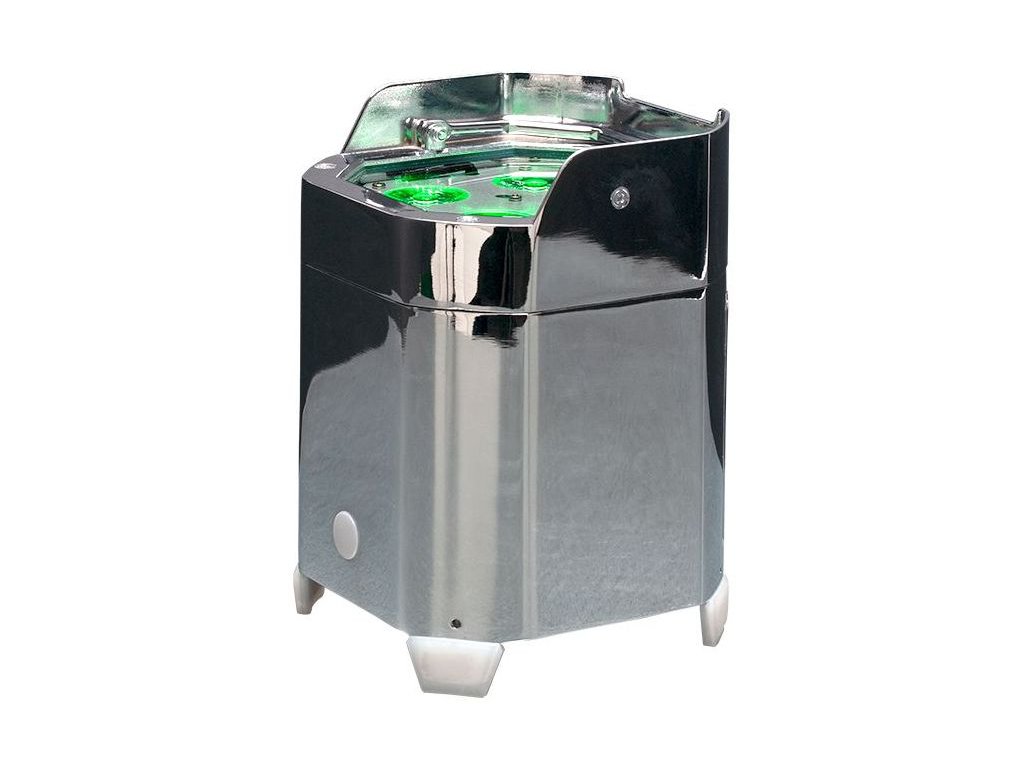 Z serii Element Par, Element HEXIP Pearl to zasilany bateryjnie LED Par z obudową IP54 w chromowanej metalowej obudowie z bezprzewodowym DMX od ADJ WiFLY EXR do użytku wewnątrz lub na zewnątrz. Zasilany jest 4 diodami LED RGBAW + UV (6-IN-1) o mocy 10 W. Seria Element Par jest lekka i łatwa w obsłudze dzięki uchwytowi i stojakowi do oświetlenia, występów, wydarzeń, produkcji i dowolnych aplikacji mobilnych. Nie są potrzebne żadne kable ani przewody!