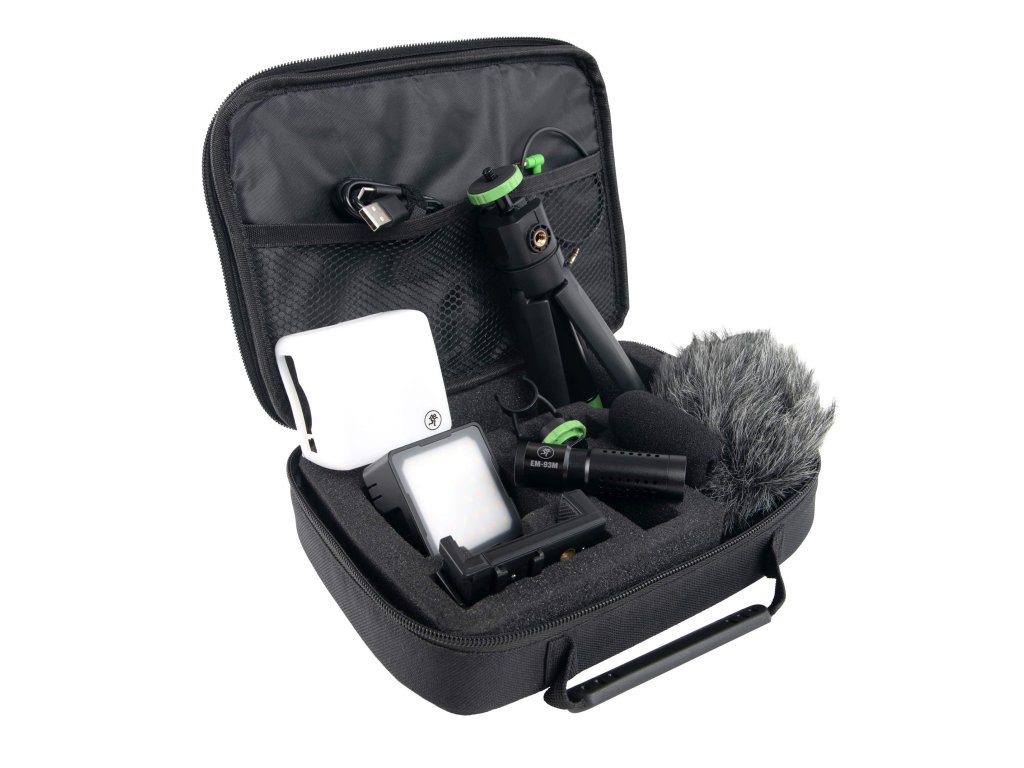 MACKIE EM-93MK to kompletny zestaw mikrofonu i akcesoriów przeznaczony do nagrywania i streamowania przez telefon. W zestawie znajduje się kompaktowy mikrofon EM-93M, dwie nakładki redukujące szumy, oświetlenie LED z wyświetlaczem LCD ułatwiającym regulację, uniwersalny uchwyt na telefon, mały statyw i przedłużka, a wszystko to w praktycznym futerale do przenoszenia. Ten zestaw jest odpowiedni zarówno do użytku w domu lub studio, jak i do użytku na zewnątrz. Wszystko, czego potrzebujesz, aby rozpocząć karierę vlogera.
