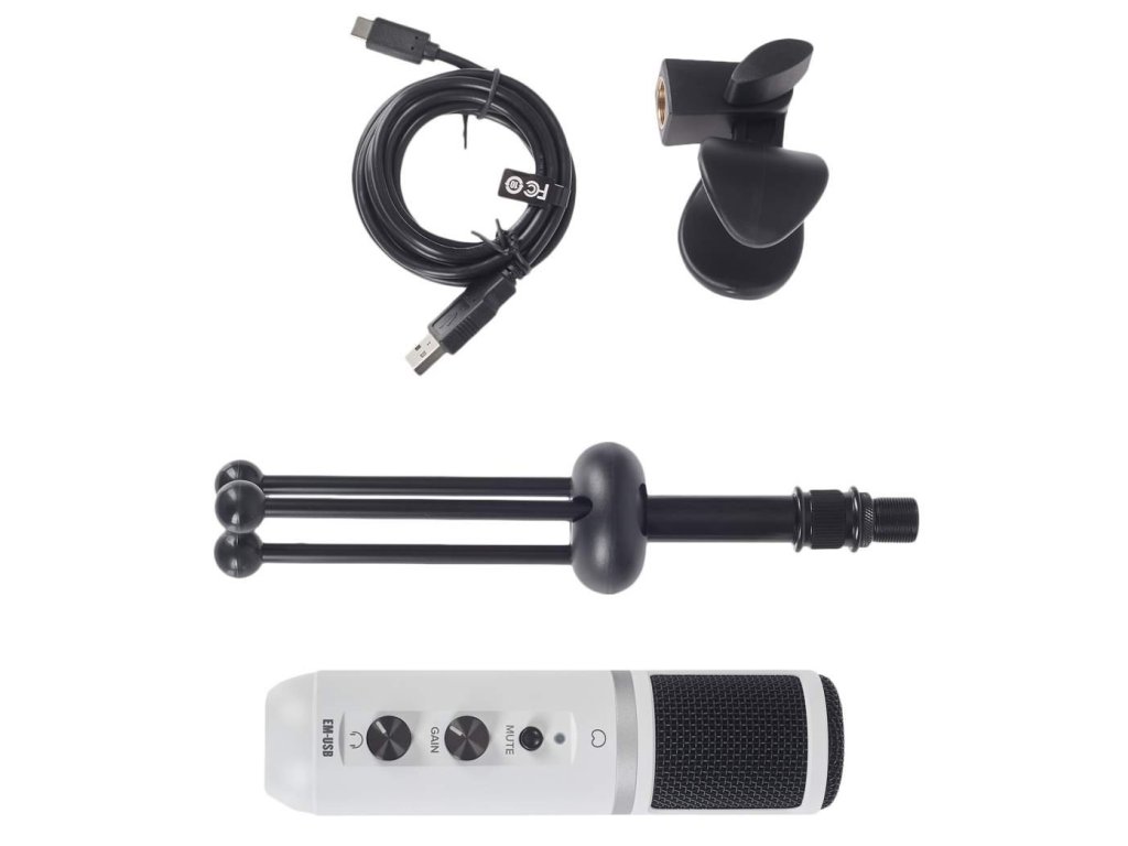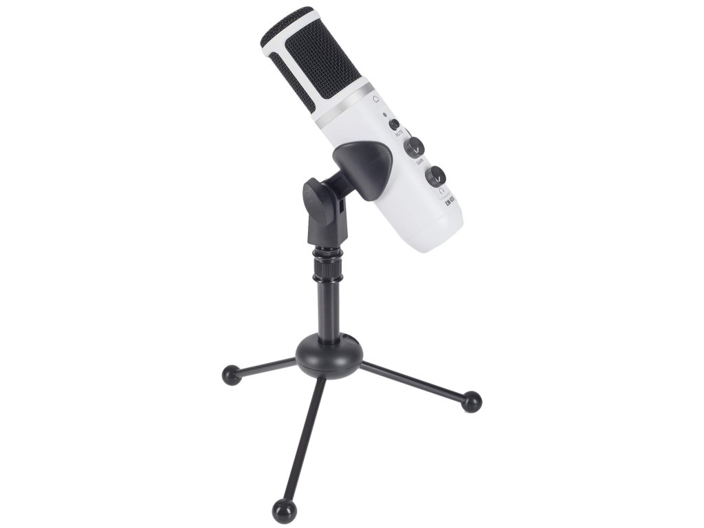 Mikrofon pojemnościowy z kardioidalną charakterystyką kierunkową i funkcją Plug and Play do natychmiastowego nagrywania dźwięku w najwyższej jakości. Z przodu znajduje się przycisk Mute, regulator głośności Gain i Volume dla wyjścia słuchawkowego. Na spodzie znajduje się port USB-C do podłączenia do komputera PC lub laptopa oraz wyjście słuchawkowe do szczegółowego monitoringu. Mikrofon jest odpowiedni do nagrywania wokali, instrumentów akustycznych lub mowy. W zestawie znajduje się trójnożny statyw, uchwyt mikrofonowy i kabel XLR.