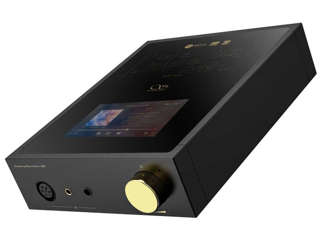 Shanling EM5 to bardzo wyjątkowe urządzenie. W rzeczywistości jest to wiele urządzeń w jednym. Na górze urządzenia znajduje się 4,7-calowy dotykowy wyświetlacz HD, za pomocą którego można sterować EM5. Jako system operacyjny wybrano specjalnie zmodyfikowany, zamknięty system Android, w którym są już zainstalowane popularne serwisy streamingowe – Spotify, Tidal, Qobuz i inne. Z przodu znajduje się pokrętło do regulacji głośności i 3 wyjścia słuchawkowe – symetryczne XLR i jack 4,4 mm oraz niesymetryczne gniazdo 6,35 mm. Z tyłu znajdują się dwa wyjścia analogowe (RCA i symetryczne XLR), dwa wyjścia cyfrowe (optyczne i koaksjalne) oraz łącznie 3 wejścia cyfrowe (koaksjalne, optyczne i USB). Dodatkowo dostępne jest jeszcze jedno USB przeznaczone do pamięci flash, wejście Ethernet i wejście zasilania AC. Urządzenie ma oczywiście również możliwość korzystania z Bluetooth i Wi-Fi. Shanling oferuje nawet aplikację mobilną, dzięki której nie musisz wszystkim sterować za pomocą wbudowanego wyświetlacza w urządzeniu, ale większość operacji można wykonać zdalnie. Dzięki temu bardzo szerokiemu interfejsowi można wykorzystać EM5 naprawdę niemal do wszystkiego, czego można sobie zażyczyć.