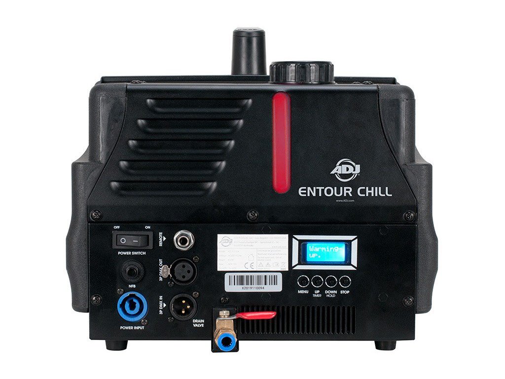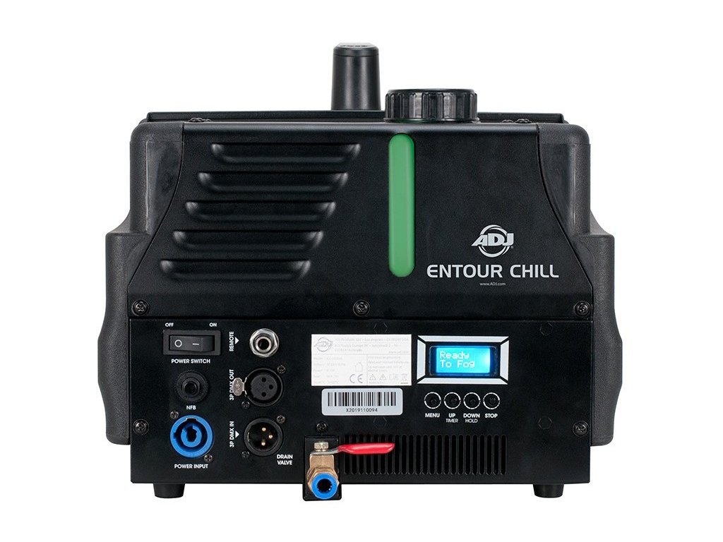 Wysokowydajny, ciągły generator mgły niskopoziomowej, który wykorzystuje standardowy płyn na bazie wody i kostki lodu do wytworzenia efektu podobnego do suchego lodu. Nowo opracowany system grzewczy o mocy 800 W umożliwia ciągłą pracę do jednej godziny, a zaawansowana, nowa elektroniczna regulacja temperatury pozwala urządzeniu nagrzać się w 3 minuty i utrzymać optymalną temperaturę gotowości do natychmiastowego użycia. Dzięki intuicyjnemu systemowi menu, dostępnemu za pośrednictwem 16-znakowego wyświetlacza LCD, urządzenie można łatwo skonfigurować do sterowania DMX, zdalnego sterowania, czasowej pracy przerywanej lub natychmiastowego ciągłego wyjścia. Entour Chill jest umieszczony w solidnej, ognioodpornej plastikowej obudowie i idealnie nadaje się do użytku w produkcjach teatralnych i trasach koncertowych, a także dla mobilnych DJ-ów weselnych lub zespołów.