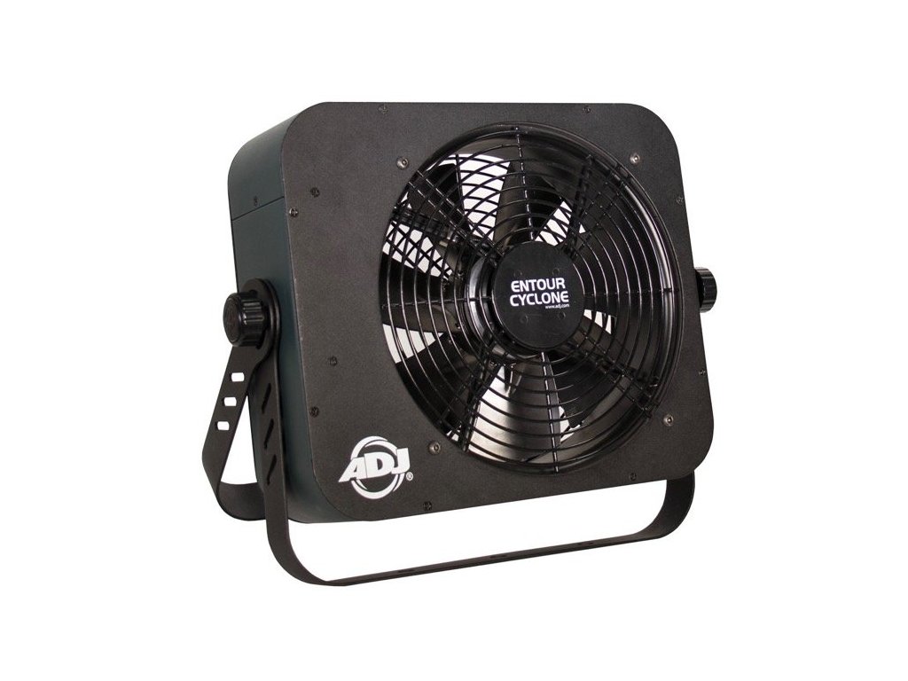 Mobilny wentylator DMX. Solidnie skonstruowana maszyna wyposażona w metalowe kratki ochronne z przodu i z tyłu wentylatora, a także dwufunkcyjny wspornik, który można wykorzystać do ustawienia urządzenia na podłodze lub do przymocowania go do kratownicy lub innej podobnej konstrukcji nośnej. Zawiera gniazda wejściowe i wyjściowe PowerCON, co oznacza, że można połączyć zasilanie dla wielu urządzeń. O wymiarach 13,75" x 16,5" x 5,25" / 350 x 422 x 131 mm (gł. x szer. x wys.) i wadze 8,56 kg urządzenie jest łatwe w transporcie, ale zdolne do tworzenia silnych efektów wiatru, które nadają się do stosowania w teatrach, na trasach koncertowych i dużych jednorazowych wydarzeniach.