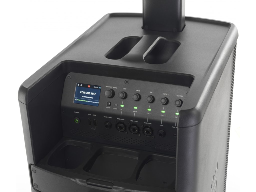 EON ONE MKII to lekki, przenośny, aktywny system nagłośnieniowy producenta JBL, oparty na technologii line array, dzięki której dysponuje doskonałym, zrównoważonym dźwiękiem w spektrum od 37 Hz do 20 kHz i szerokim, równomiernym pokryciem. Jest to druga generacja przenośnego systemu. Stanowi idealne rozwiązanie do nagłośnienia produkcji DJ-skich, występów typu one-man-show lub dla instruktorów sportowych. Zestaw składa się z subwoofera i trójdzielnego kolumnowego zestawu średnio-wysokotonowego z wzajemnym bezprzewodowym połączeniem. Dla łatwego transportu cały system można łatwo złożyć w jedną zwartą całość.