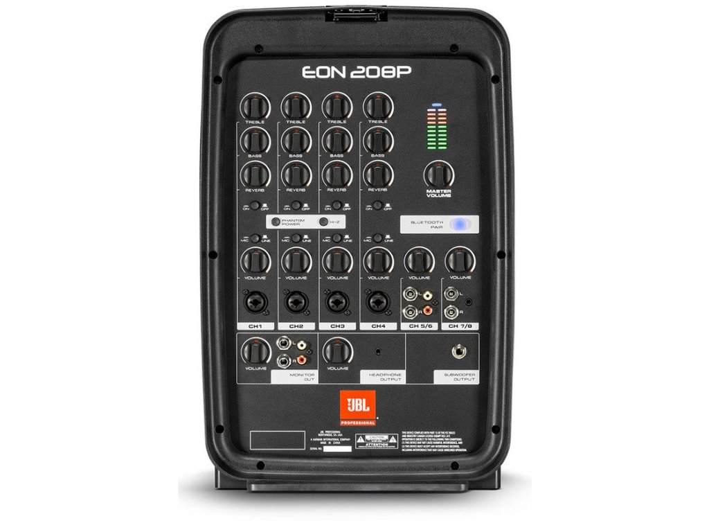 Kompletny zestaw systemu PA z szerokopasmowym, 8-kanałowym mikserem i funkcją bezprzewodowego podłączania urządzeń przez bluetooth. EON208P ma dodatkowo bardzo kompaktową konstrukcję walizkową, dzięki której jest bardzo łatwy w transporcie, a jego czysty dźwięk można łatwo przenieść na małe koncerty, spotkania, prezentacje lub inne wydarzenia. 8-kanałowy odłączany mikser oferuje 8 kanałów, z czego 4 to mono z wejściami mic/line, a 2 to stereo, co umożliwia podłączenie wszystkich typów instrumentów i mikrofonów, a o wysoką jakość dźwięku dba 8'' głośnik niskotonowy JBL i 1'' tweeter. Dzięki mocy 300W (2x 150W) masz wystarczający zapas mocy nawet w bardziej wymagających zastosowaniach. Dodatkowo, dzięki niskiej wadze i wygodnemu uchwytowi, system można nosić w jednej ręce. Wymiary urządzenia to 575 x 775 x 400 mm, a waga 17,6 kg.