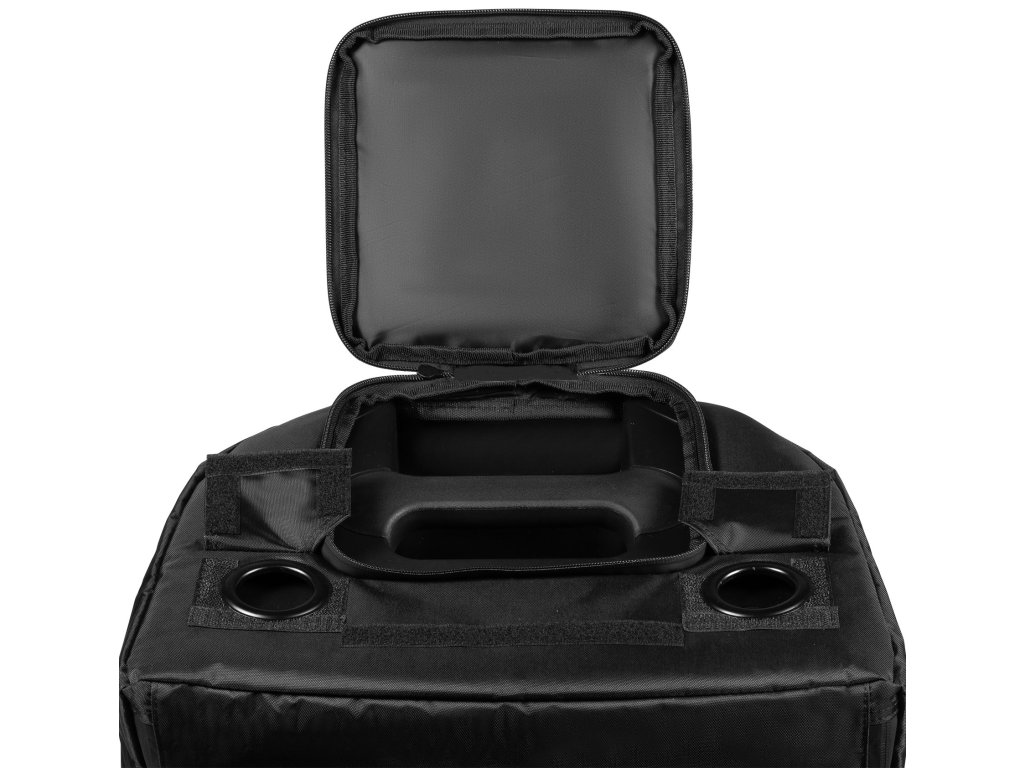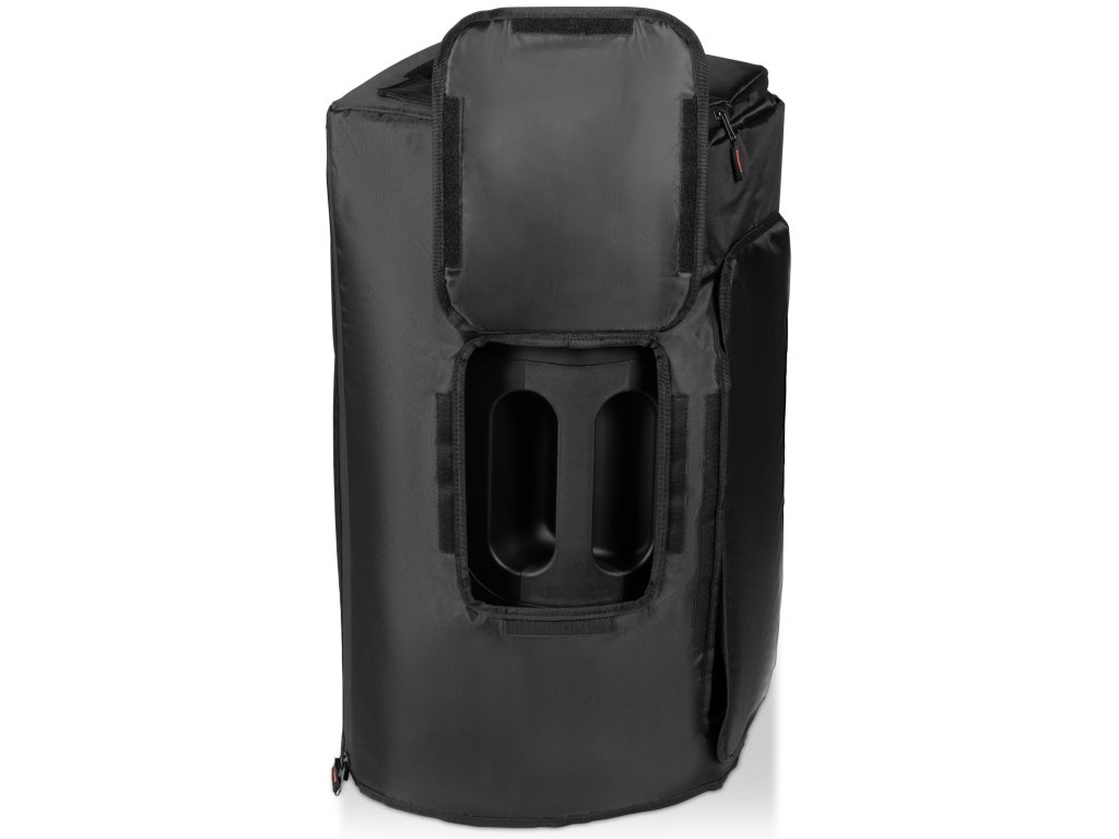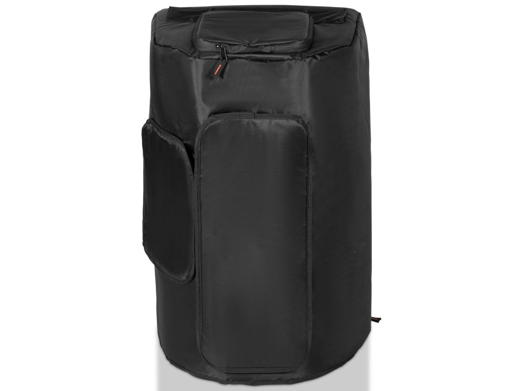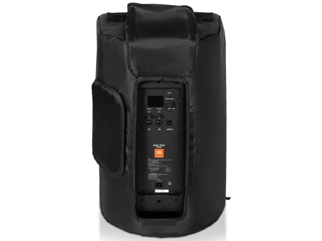 JBL EON712-CVR-WX to luksusowy pokrowiec na aktywny zestaw głośnikowy JBL EON712 z odpinanymi częściami. Umożliwia to pełną funkcjonalność i dostęp do wszystkich elementów sterujących, podczas gdy głośnik pozostaje wewnątrz pokrowca. Ochronę zestawu głośnikowego zapewnia miękka tkanina poliestrowa (210-D) o grubości 5 mm po stronie wewnętrznej, strona zewnętrzna wykonana jest z wytrzymałego poliestru 420-D z wodoodpornym wykończeniem. Otwory umożliwiające dostęp do uchwytów transportowych umożliwiają manipulację skrzynią bez konieczności zdejmowania pokrowca. Precyzyjnie ukształtowana konstrukcja zapewnia doskonałą stabilność i zapobiega wpływowi czynników mechanicznych podczas transportu lub przechowywania. Eleganckie czarne wykończenie uzupełnia logo firmy umieszczone z przodu.