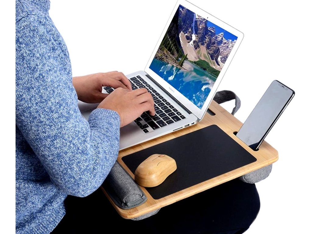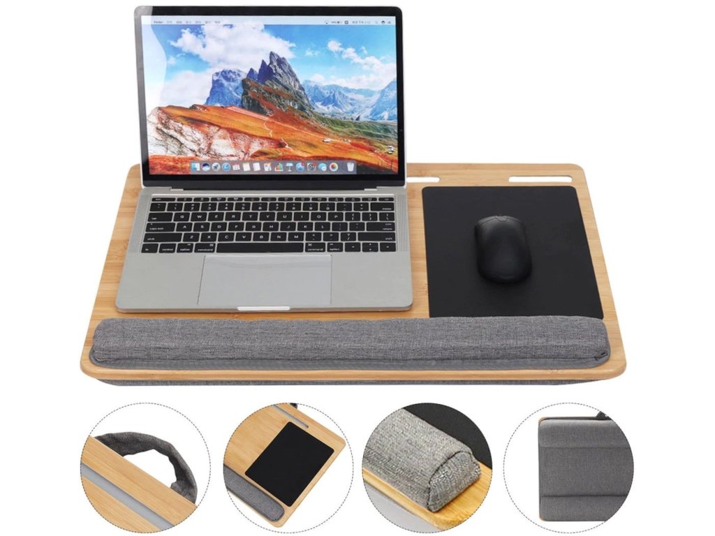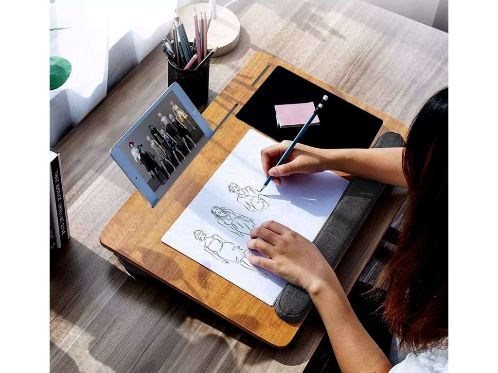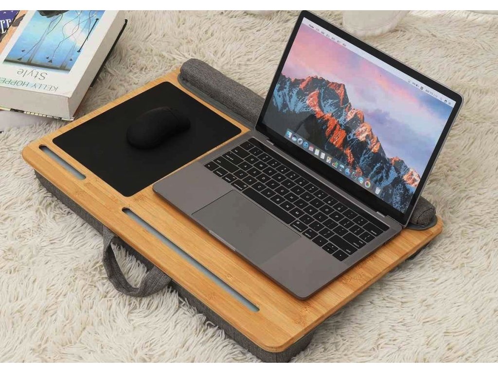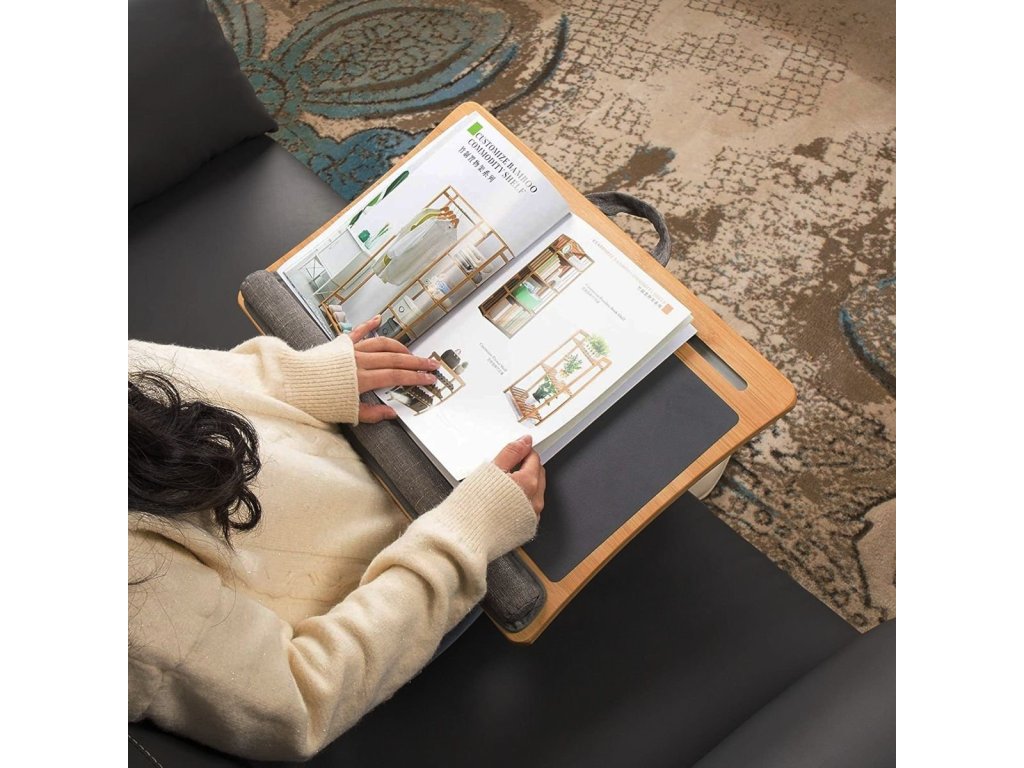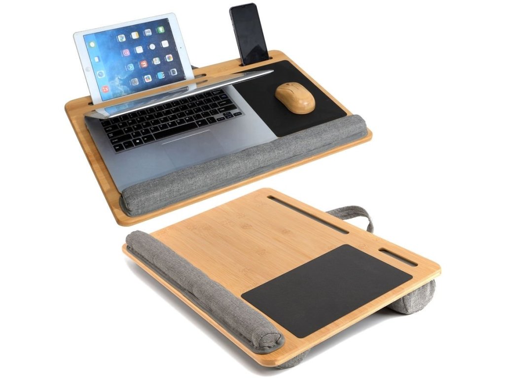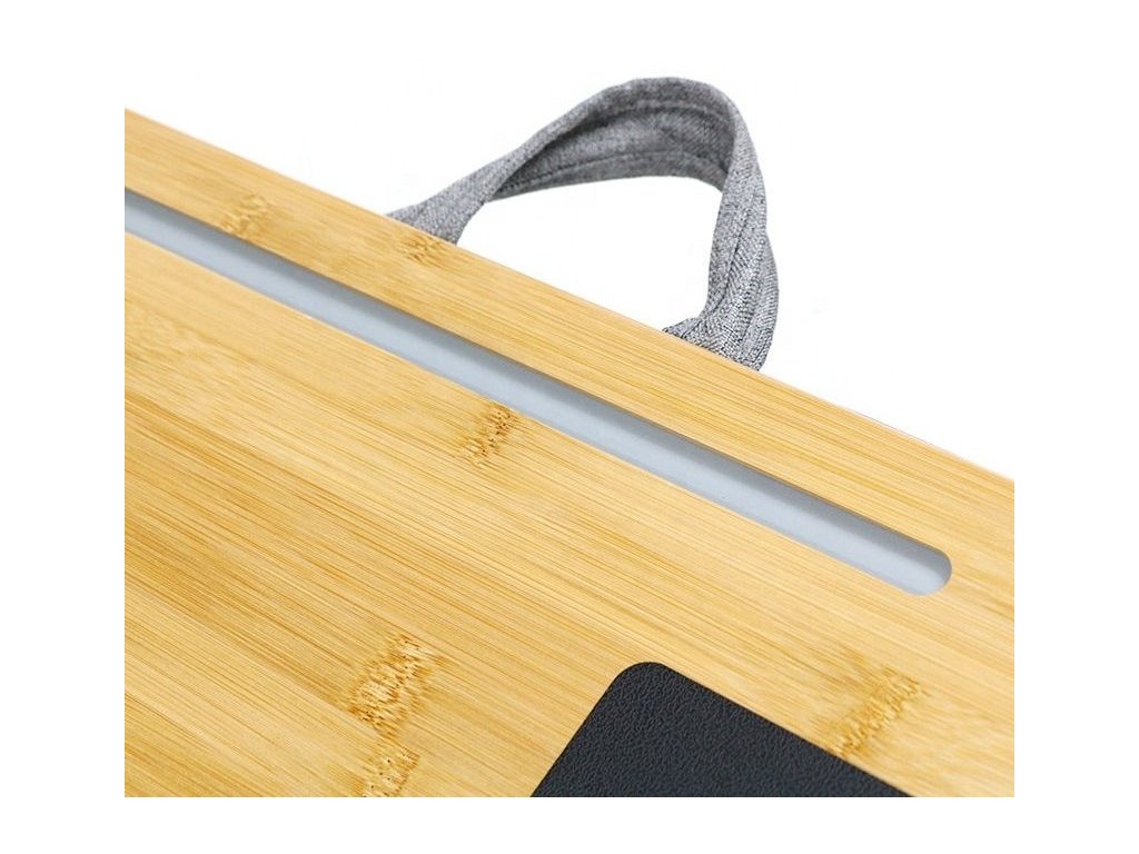 Uniwersalna podkładka robocza z bambusa, odpowiednia dla projektantów mody, grafików i innych twórców, którzy potrzebują maksymalnego komfortu w pracy. Tylna strona posiada miękką wyściółkę z antypoślizgową powierzchnią, taką samą wyściółkę można znaleźć również z przodu, na łokcie. Przednia strona zawiera również dwa wycięcia na tablet lub smartfon oraz antypoślizgową podkładkę pod mysz.