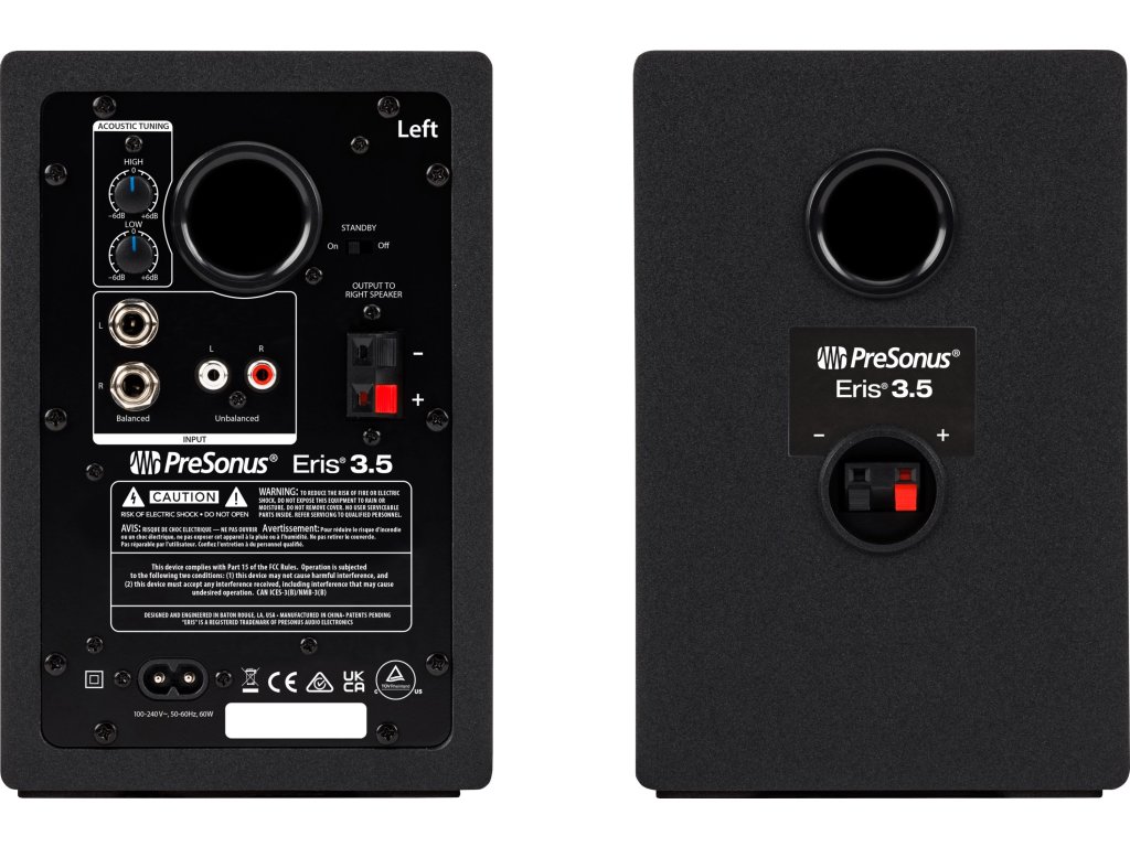 Wygodne pokrętło na przednim panelu reguluje poziom wzmacniacza mocy, a także głośny i czysty wzmacniacz słuchawkowy (złącze jack na panelu przednim). Dzięki 3 typom wejść łatwo jest podłączyć do referencyjnych monitorów Eris 3.5 niemal dowolne źródło dźwięku. Regulatory wysokich i niskich częstotliwości umożliwiają łatwe ustawienie odpowiedzi częstotliwościowej głośników Eris tak, aby kompensowały akustykę Twojego pomieszczenia i tworzyły jak najdokładniejszą reprodukcję dźwięku.