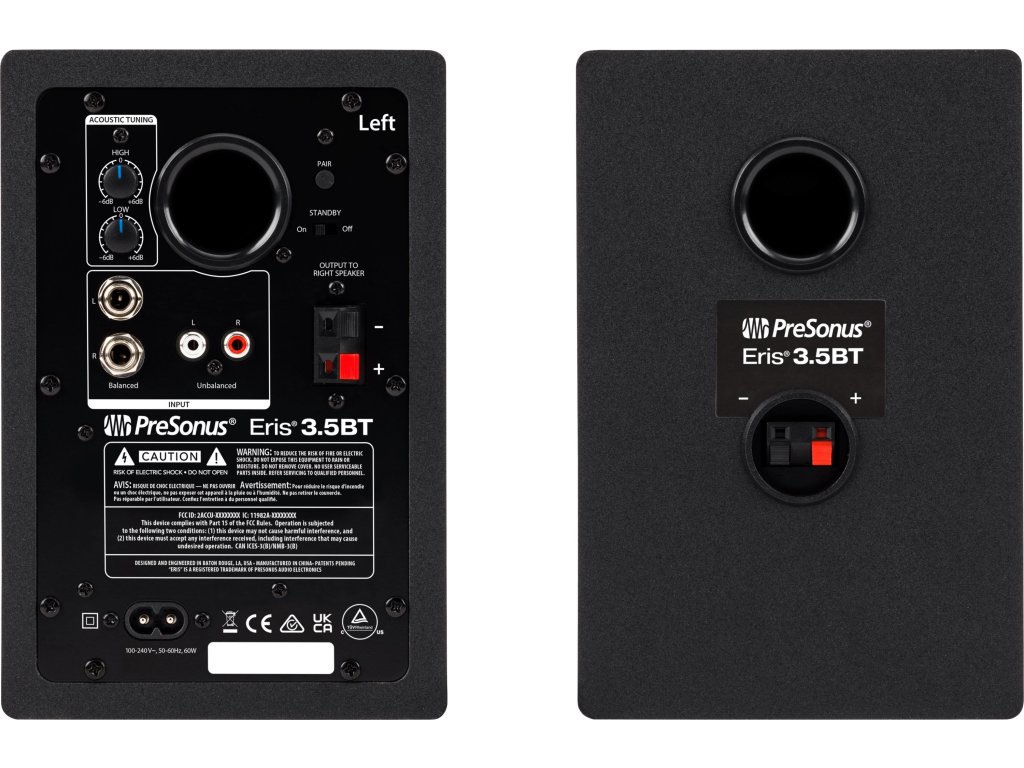 Wygodne pokrętło na przednim panelu reguluje poziom wzmacniacza mocy, a także głośny i czysty wzmacniacz słuchawkowy (złącze jack na panelu przednim). Dzięki 4 typom wejść, w tym szybkiemu i niezawodnemu stereofonicznemu połączeniu Bluetooth 5.0, łatwo jest podłączyć do monitorów referencyjnych Eris 3.5BT niemal dowolne źródło dźwięku. Regulatory wysokich i niskich częstotliwości umożliwiają łatwe ustawienie odpowiedzi częstotliwościowej głośników Eris tak, aby kompensowały akustykę Twojego pomieszczenia i tworzyły jak najdokładniejszą reprodukcję dźwięku.