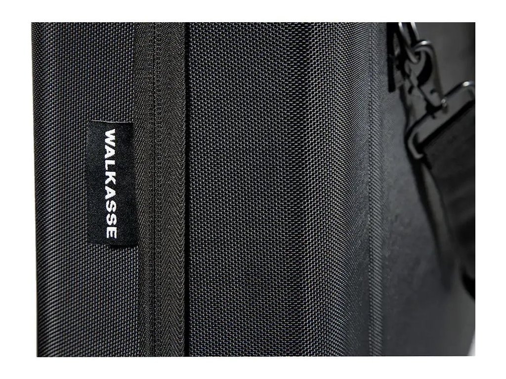 Nowa torba transportowa marki Walkasse wykonana ze sprasowanej pianki EVA zaskakuje lekkością, ergonomicznymi elementami, a przede wszystkim wytrzymałością. PEVA to elastomerowy polimer, który wytwarza materiały „gumowe” pod względem miękkości i elastyczności. Ta właściwość odróżnia go od termoplastu tym, że materiał jest usieciowany. Materiał ten charakteryzuje się czystością i połyskiem, odpornością na niskie temperatury, odpornością na stres, pęknięcia, wysokie temperatury, wilgoć, a ponadto jest odporny na promieniowanie UV. Nylonowa warstwa zewnętrzna odpycha płyny i chroni przed uszkodzeniami mechanicznymi. Wieko jest wyściełane pianką poliuretanową typu „fala” o gęstości 18kg/m3 i grubości 3 cm, spód jest wypełniony płaską pianką poliuretanową o gęstości 33kg/m3 i grubości 1cm. Torba może być przenoszona za podwójny, wyściełany uchwyt lub na ramieniu za pomocą odpinanego paska na ramię.