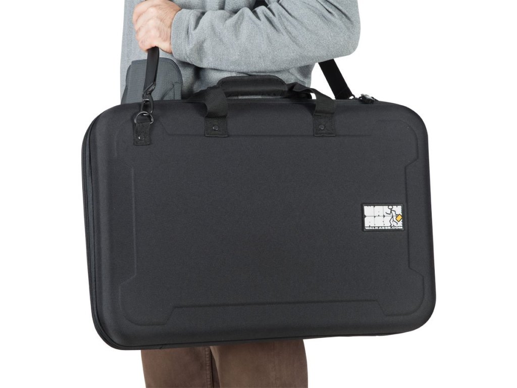 Nowa torba transportowa marki Walkasse wykonana ze sprasowanej pianki EVA zaskakuje lekkością, ergonomicznymi elementami, a przede wszystkim wytrzymałością. PEVA to elastomerowy polimer, który wytwarza materiały „gumowe” pod względem miękkości i elastyczności. Ta właściwość odróżnia go od termoplastu tym, że materiał jest usieciowany. Materiał ten charakteryzuje się dobrą czystością i połyskiem, odpornością na niskie temperatury, odpornością na naprężenia, pęknięcia, wysokie temperatury, ma właściwości wodoodporne, a ponadto jest odporny na promieniowanie UV. Nylonowa warstwa zewnętrzna odpycha płyny i chroni przed uszkodzeniami mechanicznymi. Wieko jest wyściełane pianką poliuretanową typu „fala” o gęstości 18kg/m3 i grubości 3 cm, spód jest wypełniony płaską pianką poliuretanową o gęstości 33kg/m3 i grubości 1cm.