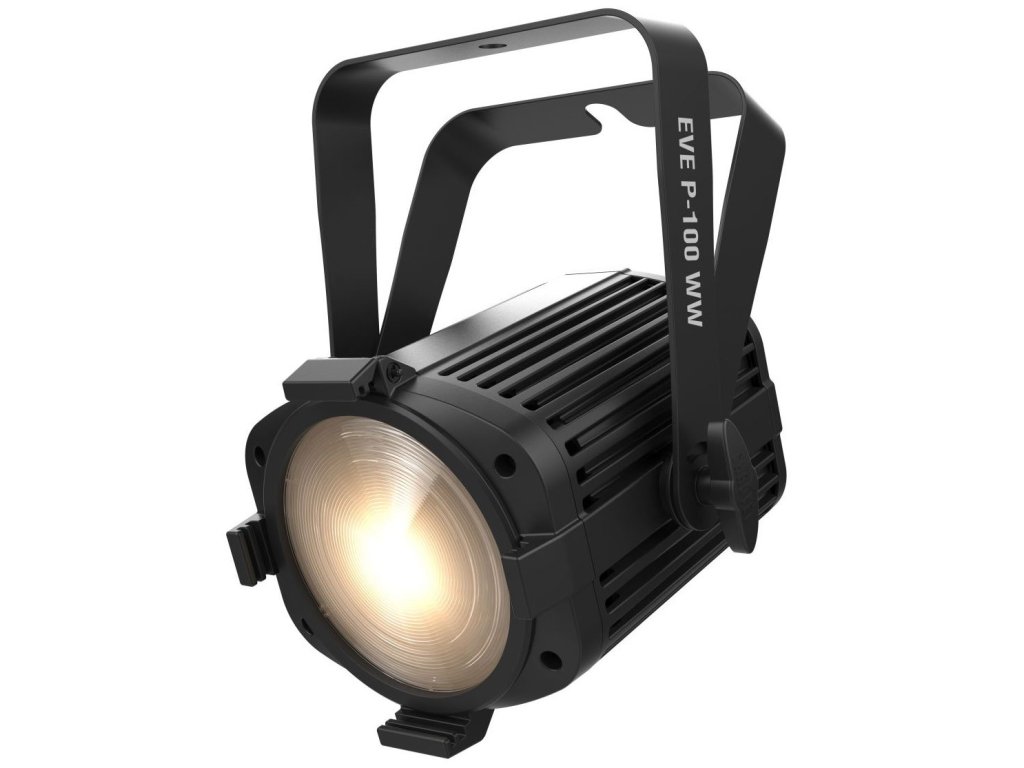 Ciepłe, jasne i równomierne oświetlenie typu wash jest na wyciągnięcie ręki dzięki EVE P-100 WW, wysokowydajnemu reflektorowi LED PAR, generującemu ciepłe białe (3500 K) światło typu wash, przeznaczonemu do instalacji i zastosowań mobilnych. Zawiera wymienne soczewki magnetyczne do zmiany wiązki pod żądanym kątem. EVE P-100 WW jest wyposażony we wbudowany uchwyt na filtry żelowe i praktyczne gniazdo na akcesoria o średnicy 6¼ cala. Jego konstrukcja bez wentylatora zapewnia w 100% cichą pracę, co jest idealne do instalacji, w których wymagana jest cisza. Wysokiej częstotliwości ściemnianie LED eliminuje migotanie, dzięki czemu EVE P-100WW doskonale nadaje się do zastosowań wideo i transmisyjnych. Zintegrowana kompatybilność D-Fi USB do bezprzewodowego sterowania master/slave lub DMX, a także wejście/wyjście zasilania kompatybilne z powerCON® do podłączenia zasilania. Solidna aluminiowa obudowa zapewnia dodatkową wytrzymałość i niską wagę. EVE P-100WW najlepiej pasuje do torby transportowej CHS-40 VIP gear bag.