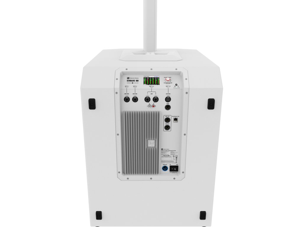 EVOLVE 90, dostępny w kolorze czarnym lub białym, ulepsza konstrukcję serii EVOLVE i opiera się na lekkich materiałach i ergonomicznych zasadach projektowania, aby zapewnić maksymalną przenośność i znany, efektowny wygląd. Aluminiowy słupek dystansowy oddziela górne kolumny głośnikowe od subwooferów, a neodymowe przetworniki i zaawansowane materiały utrzymują niską wagę. Dołączony futerał transportowy na kolumnę i słupek dystansowy w połączeniu z opcjonalnym wózkiem transportowym zapewniają, że EVOLVE utrzymuje swoją doskonałą reputację w zakresie przenośności.