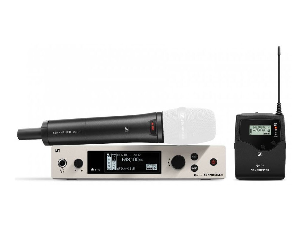 w 300 G4-SK/M (BASE COMBO) to bezprzewodowy zestaw z nadajnikiem ręcznym bez głowicy mikrofonowej i nadajnikiem kieszonkowym bez mikrofonu krawatowego. Nadajnik ręczny SKM 300 G4-S z przyciskiem MUTE i stykami ładowania można połączyć z dowolną głowicą mikrofonową. Nadajnik kieszonkowy SK 300 G4 współpracuje z każdym mikrofonem krawatowym lub nagłownym kompatybilnym z serią ew. Podobnie jak odbiornik rackowy EM 300 G4, jest wyposażony w dwadzieścia jeden grup częstotliwości z dwudziestoma czterema bezpośrednio dostępnymi ustawieniami wstępnymi do natychmiastowego użycia.